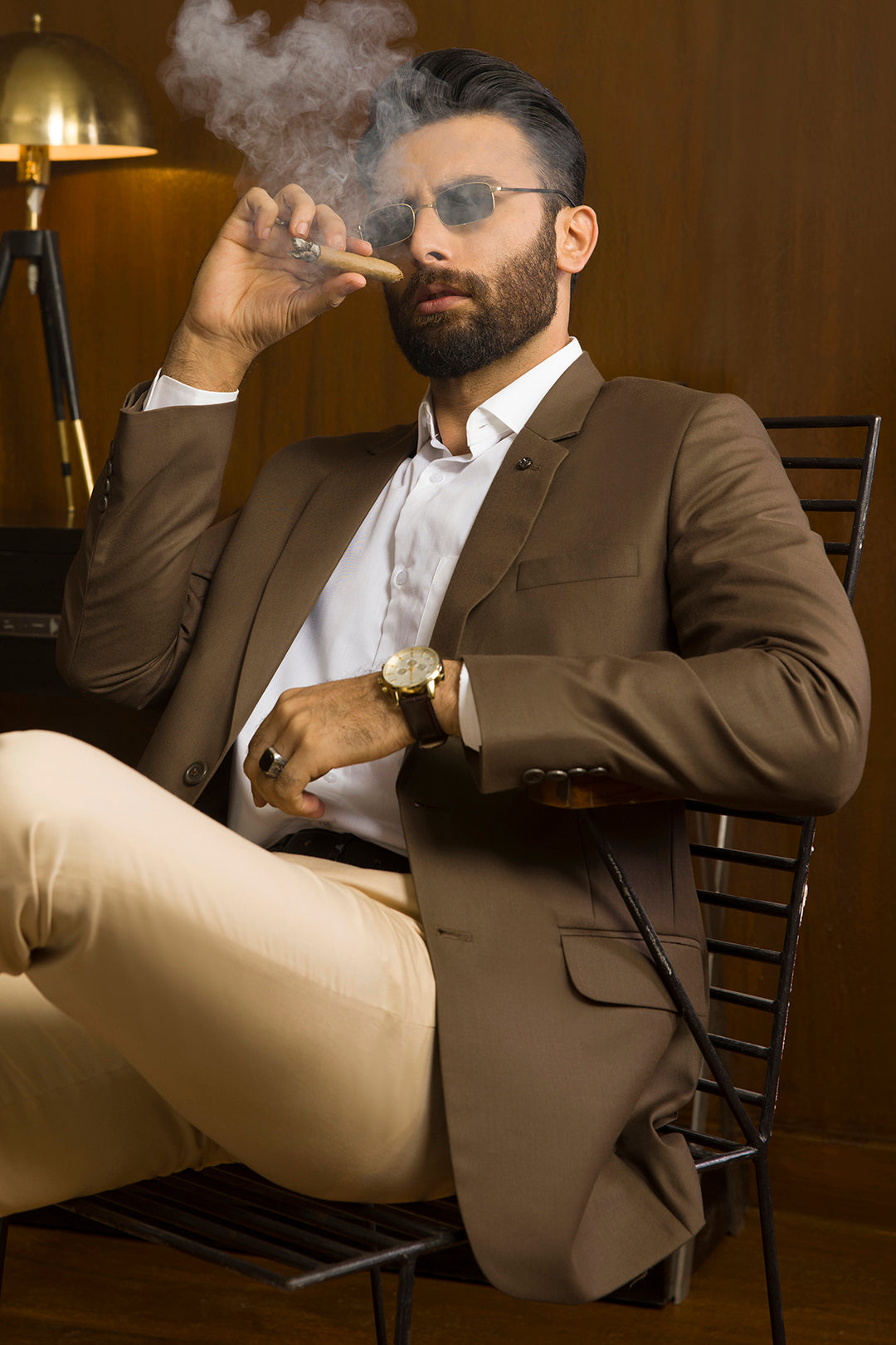 This brown men's blazer is tailored from premium suiting fabric, offering a sleek and polished look for formal and business occasions. Its classic Western design ensures a sophisticated silhouette, combining comfort with a refined style ideal for professional wardrobes.
