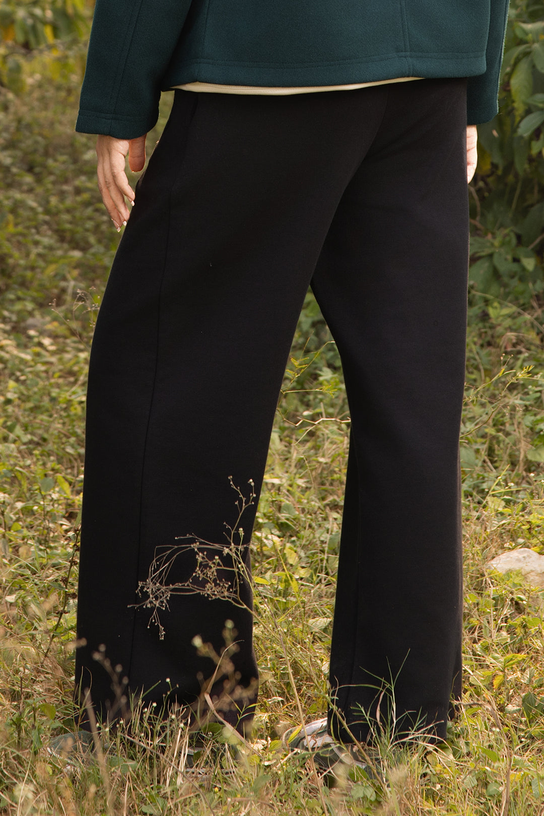 High-waisted Black tailored-fit trousers in premium scuba interlock fabric, finished with side pockets and a front pleat for a polished yet easy-to-style look.