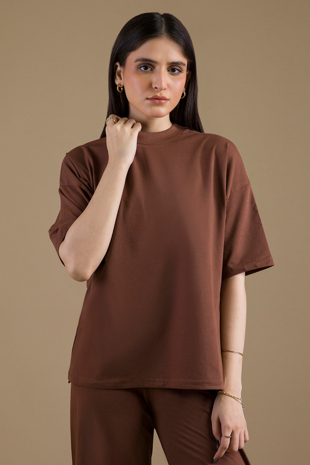 Crafted from soft cotton jersey, this brown dyed women's T-shirt offers breathable comfort and everyday durability. Its rich color and smooth texture make it a versatile addition to your wardrobe, ideal for layering or wearing on its own with casual or smart ensembles.