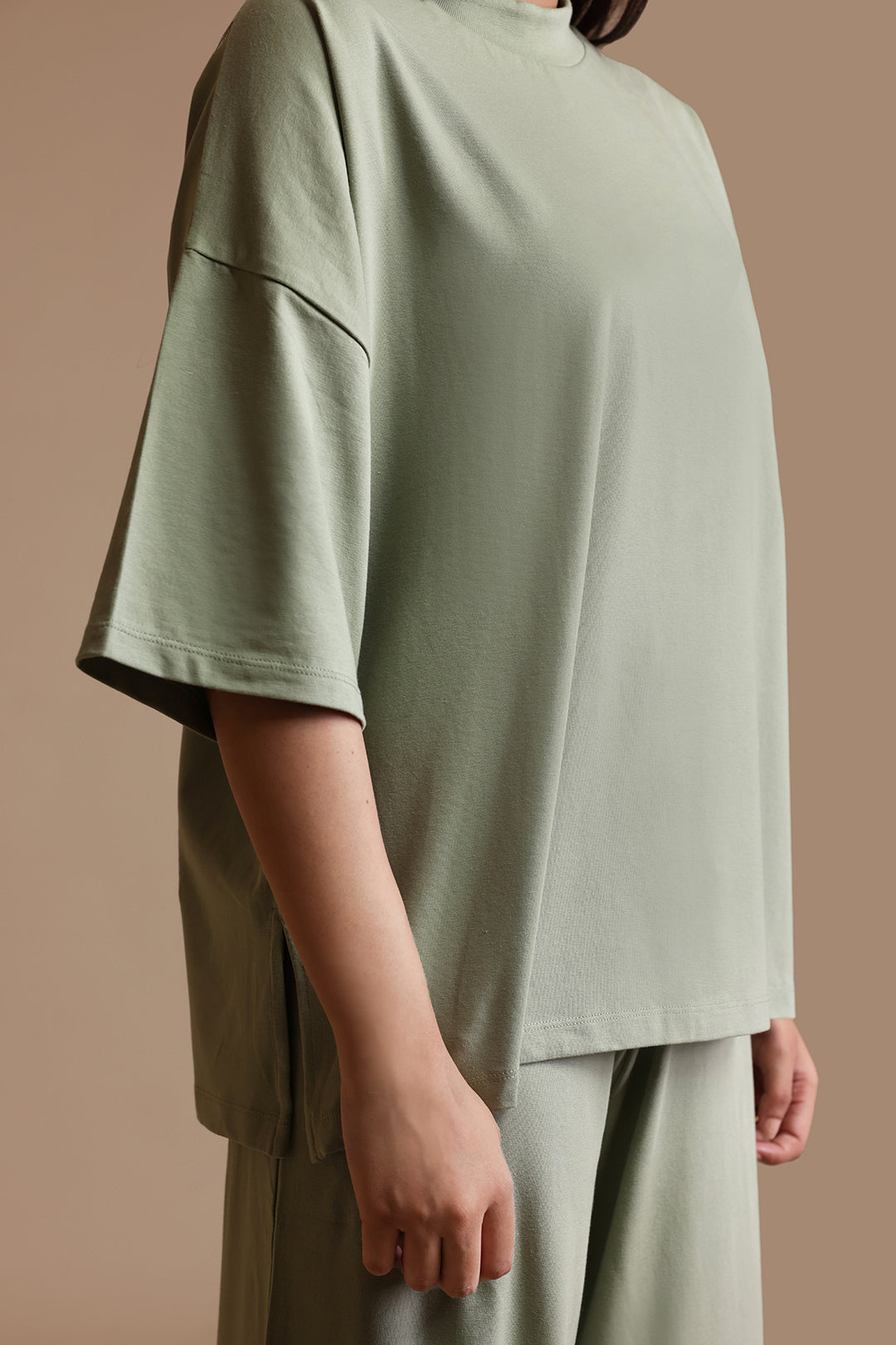 Crafted from soft cotton jersey, this sage green dyed women's T-shirt offers breathable comfort and a flattering fit. Its natural fabric ensures durability and ease of care, making it an ideal choice for everyday wear with a refined, expert touch.