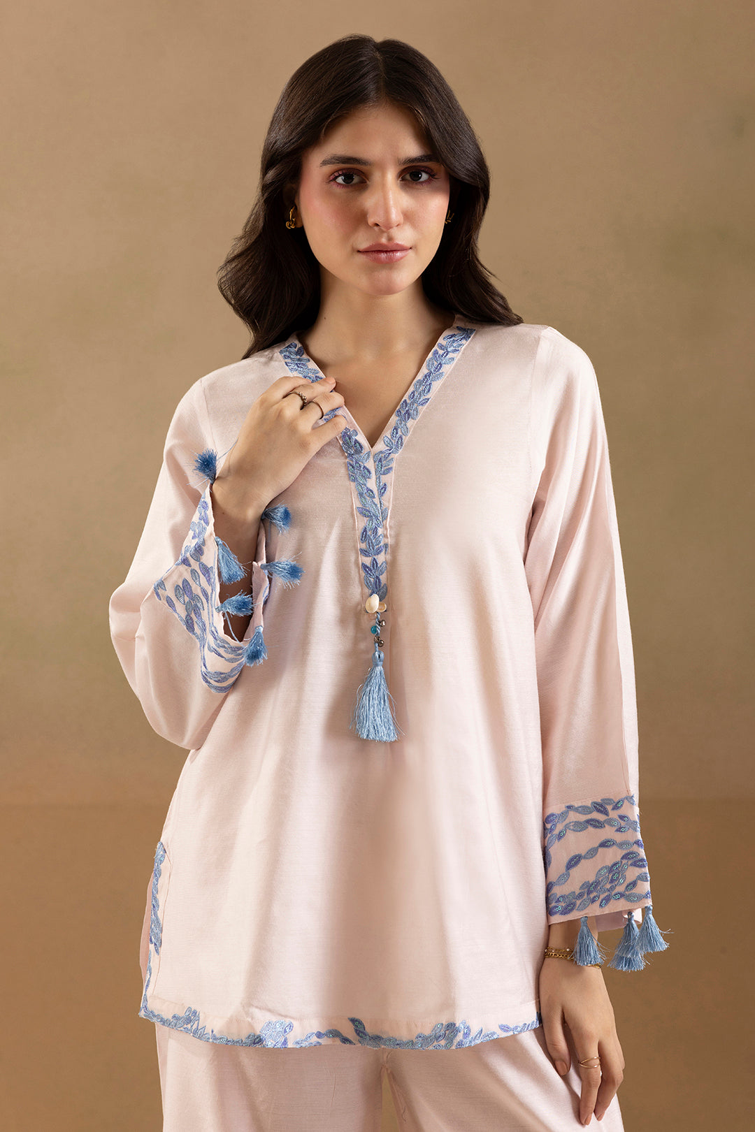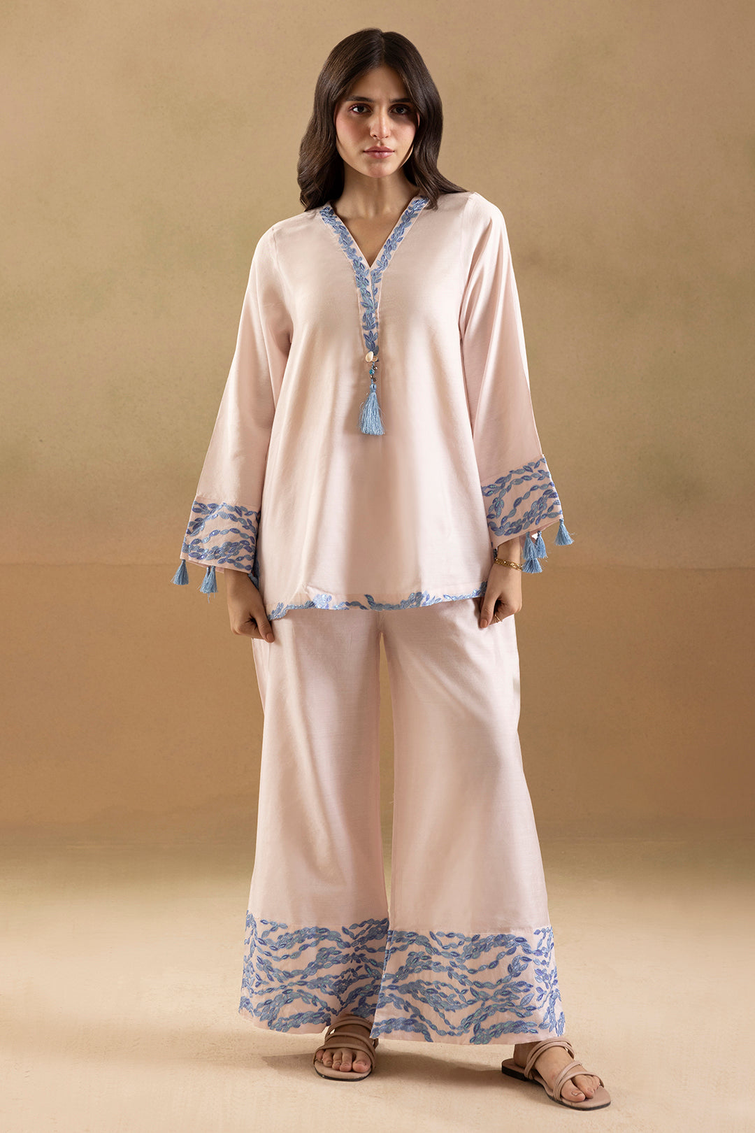 This beautifully embroidered women's co-ord set in light pink combines elegance with comfort. Crafted from soft cotton satin, it offers a smooth, breathable feel ideal for all-day wear. The detailed embroidery adds a refined touch, making it suitable for both casual and semi-formal occasions. Perfectly tailored for a flattering fit, this set balances style and ease effortlessly.