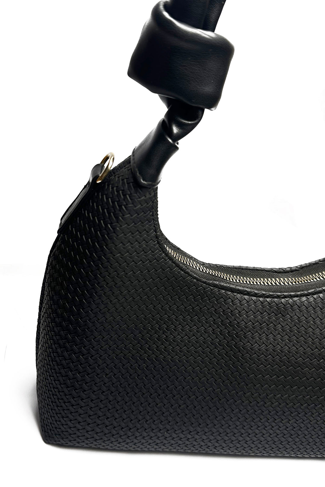 Cross body bag in zip closure. Single compartment, with a hand carry handle