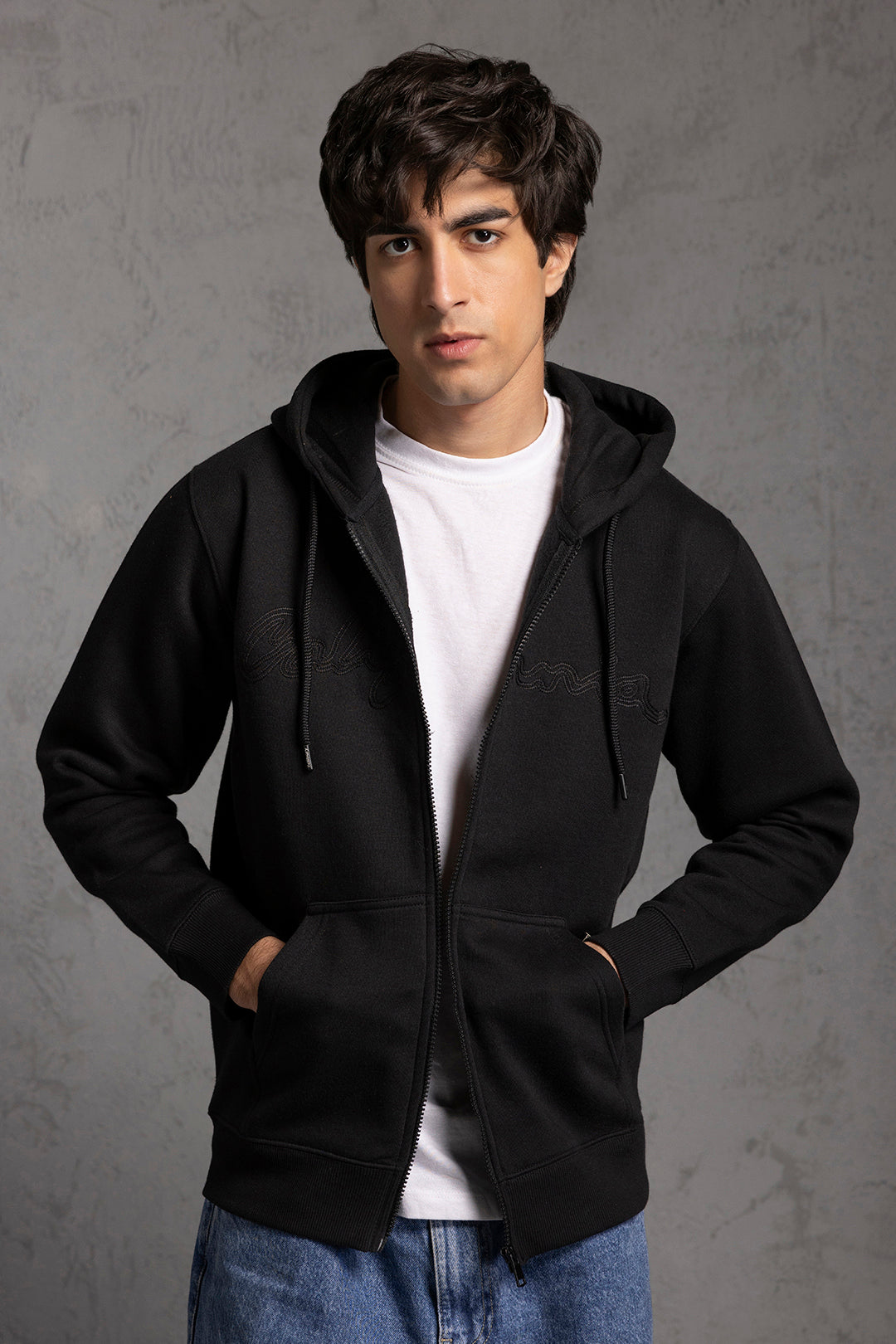 Elevate your winter wardrobe with this premium graphic zipper hoodie from our exclusive collection. Crafted from soft, durable fleece fabric, this piece delivers exceptional warmth and comfort during colder months. The striking graphic design adds contemporary style, while the full-length zipper ensures easy layering and temperature control. Perfect for casual outings or relaxed weekends, this black hoodie combines functionality with modern aesthetics. An essential addition to any man's seasonal collection.