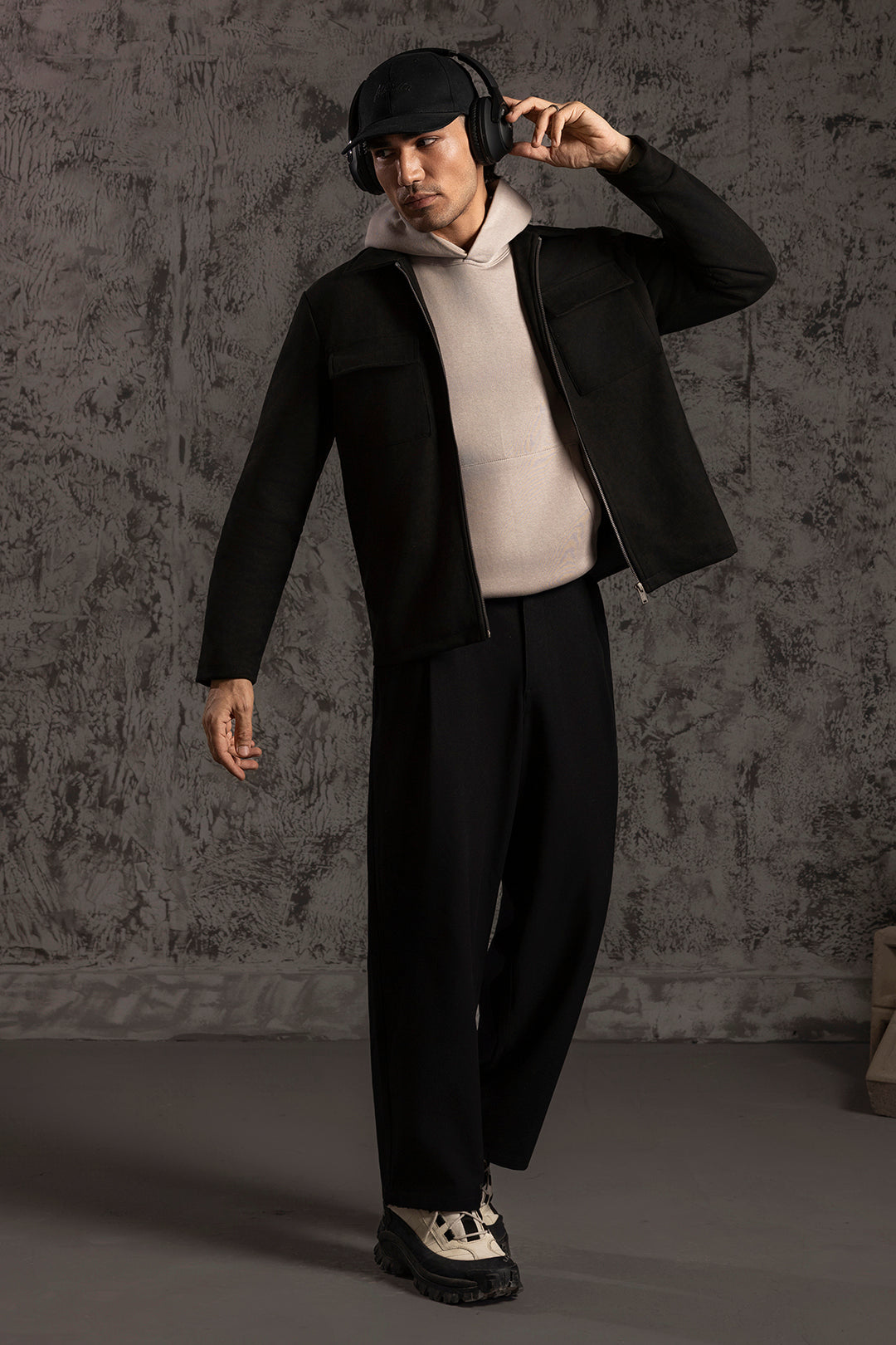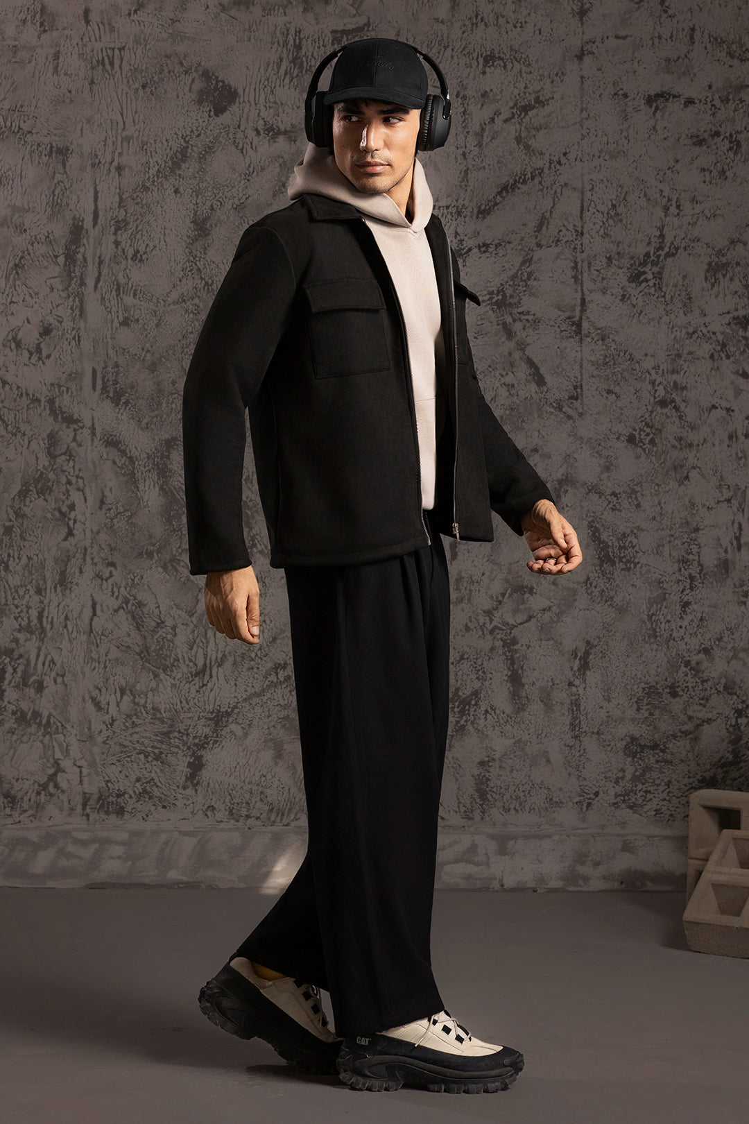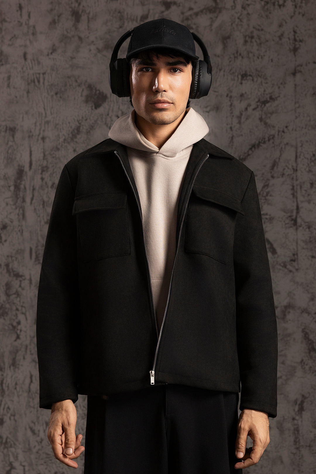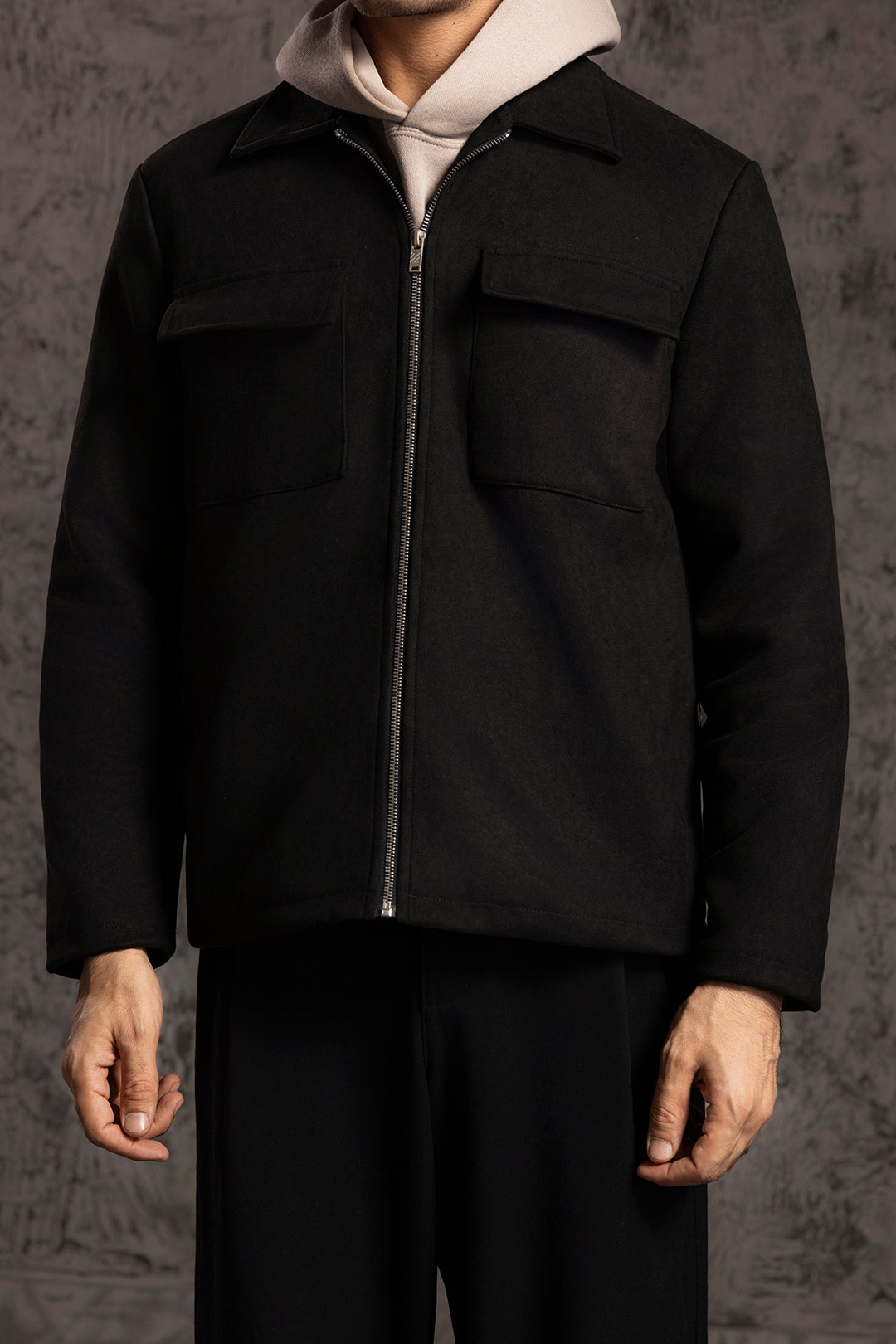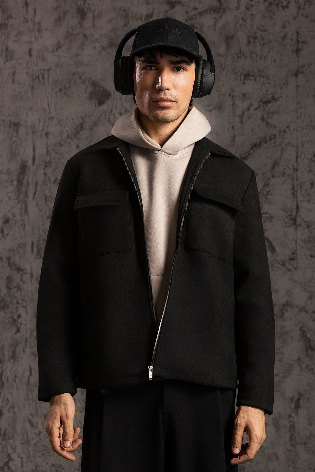 Elevate your winter wardrobe with this sophisticated faux suede jacket, crafted from premium suedette fabric that delivers the luxurious look and feel of genuine suede without the maintenance demands. The rich black colorway offers timeless versatility, seamlessly pairing with both casual and refined ensembles. Designed for the modern man, this piece combines contemporary styling with exceptional comfort, making it an essential layering option for cooler seasons. The suedette construction provides durability and a refined texture that ages beautifully, while the structured silhouette ensures a polished appearance whether worn casually or dressed up for evening occasions.