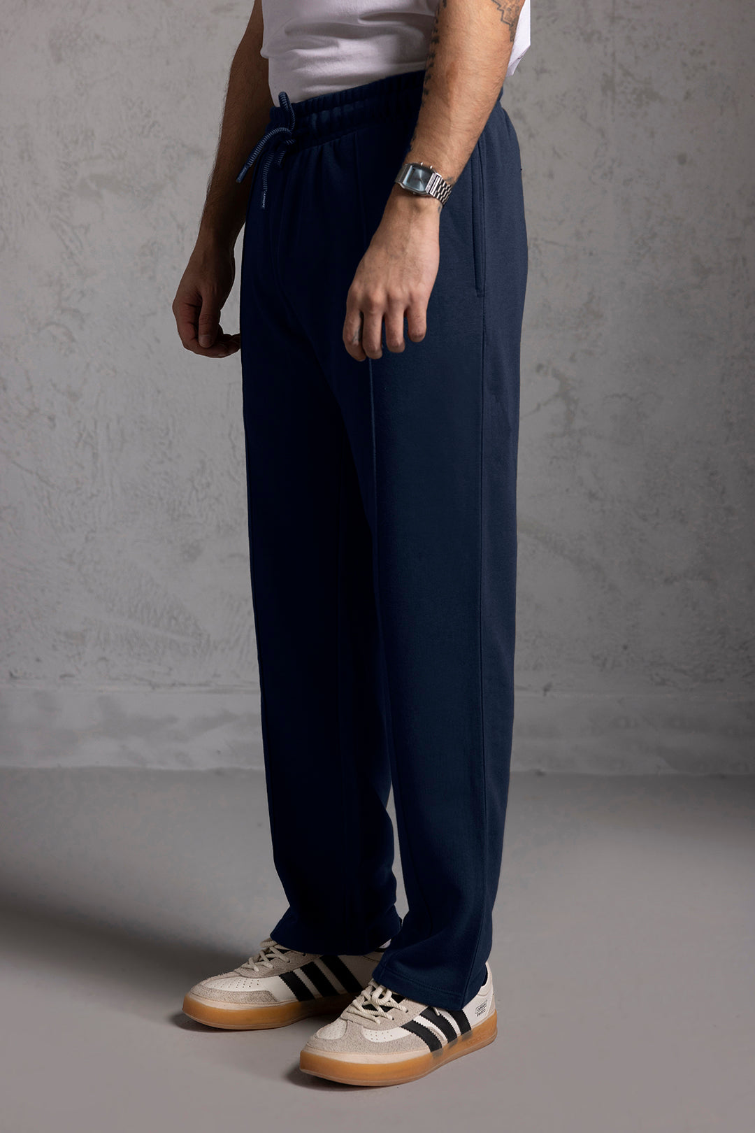 Crafted from premium French Terry fabric, these jogger pants deliver exceptional comfort and durability for the modern man. The soft, breathable material provides a luxurious feel against the skin while maintaining its shape through regular wear. The navy colorway offers versatile styling options, seamlessly transitioning from casual loungewear to street-ready looks. Designed with a refined fit and quality construction, these joggers combine relaxed comfort with polished aesthetics, making them an essential addition to any contemporary wardrobe.