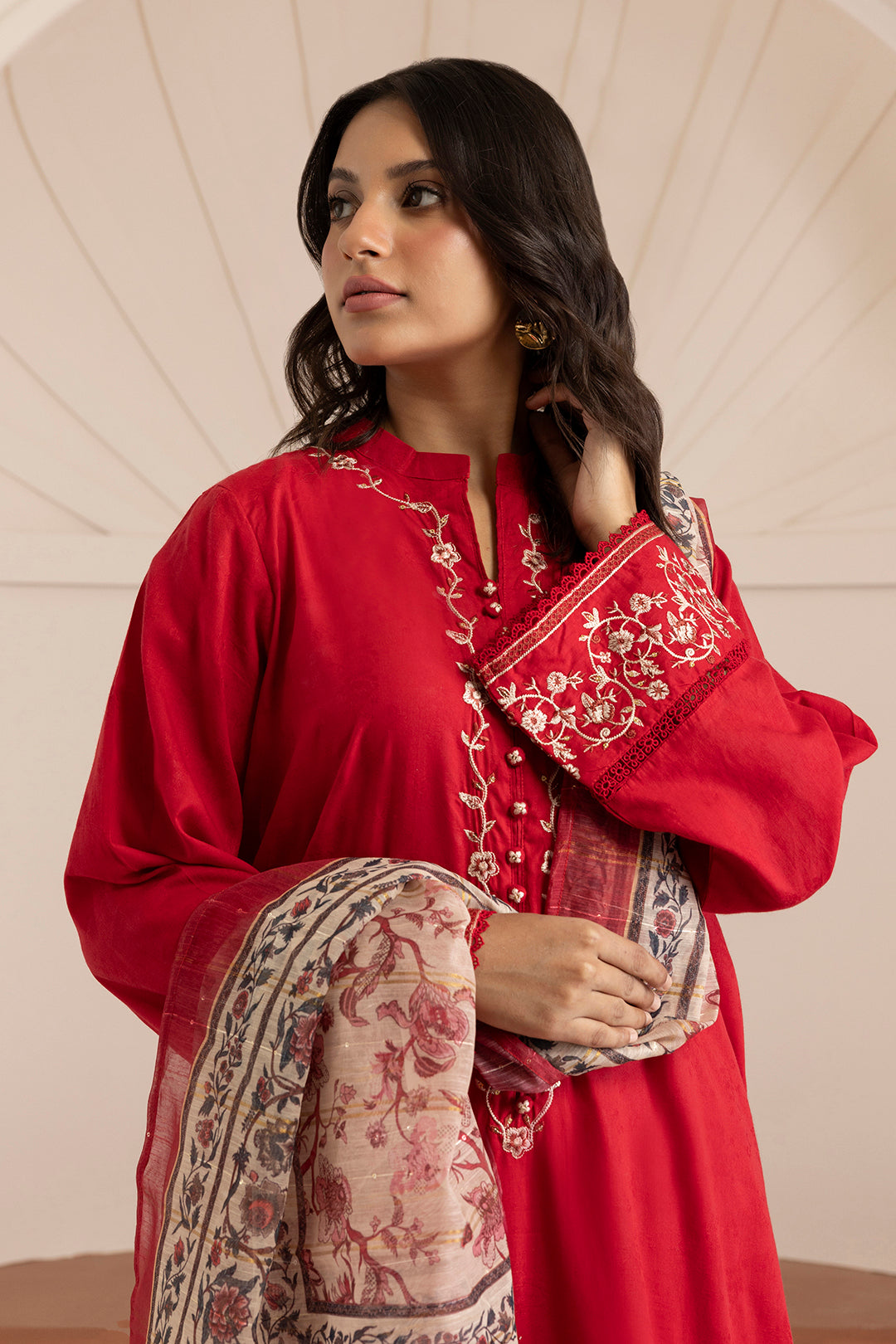 Elevate your wardrobe with this sophisticated embroidered kurta dupatta trouser ensemble, expertly crafted for the modern woman. Tailored in premium Textured Lawn Fabric, this three-piece pret collection features intricate embroidery detailing that adds timeless elegance to your everyday style. The rich red hue complements all skin tones while the breathable lawn material ensures comfort throughout the day. Perfect for casual gatherings, family occasions, or professional settings, this versatile set combines traditional craftsmanship with contemporary design. Experience the perfect balance of comfort, quality, and aesthetic appeal with this essential addition to your ethnic wardrobe.