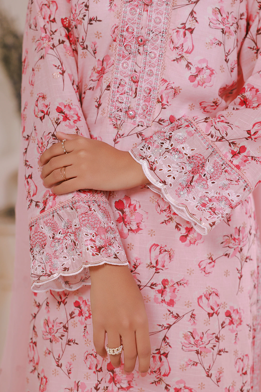 Elevate your wardrobe with this sophisticated three-piece ensemble featuring an intricately embroidered kurta paired with a matching dupatta and trouser. Crafted from premium textured lawn fabric, this pret collection piece delivers exceptional comfort and breathability for everyday wear. The delicate embroidery detailing adds refined elegance, while the soft pink hue complements various skin tones beautifully. Perfect for casual gatherings, family occasions, or professional settings, this versatile set combines traditional craftsmanship with contemporary styling. The textured fabric ensures durability while maintaining a graceful drape, making it an essential addition to any woman's collection.