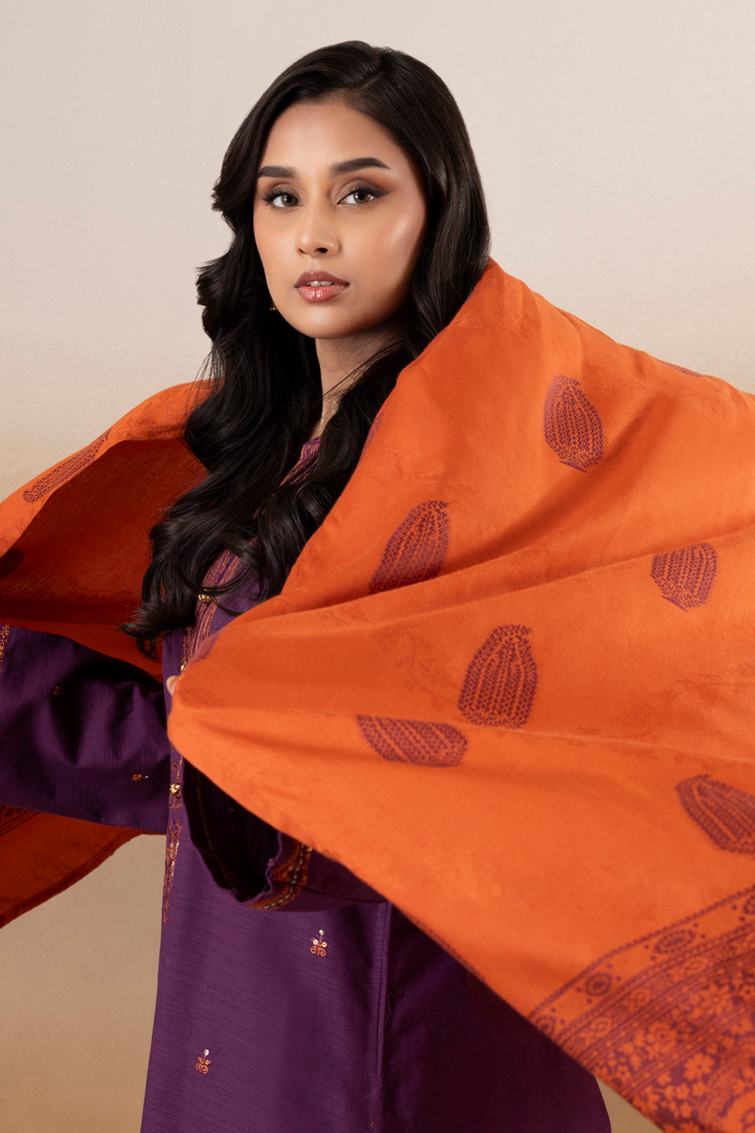 This elegant women's three-piece set features a richly embroidered kurta paired with a matching dupatta and trouser, crafted from premium Khaddar fabric. Designed for comfort and style, the plum-colored outfit offers a perfect blend of tradition and contemporary fashion, ideal for pret wear. The breathable material ensures ease of wear throughout the day, while the detailed embroidery adds a refined touch to your wardrobe.