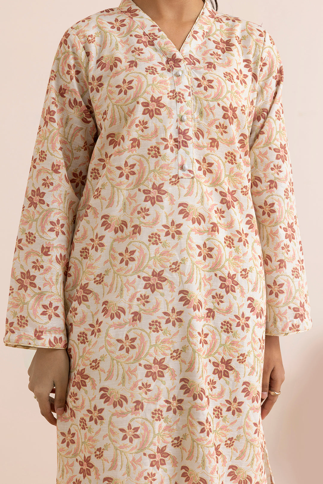 Elevate your everyday wardrobe with this sophisticated three-piece ensemble crafted from premium khaddar fabric. The printed kurta features refined detailing paired with a coordinating dupatta and tailored trouser, offering a polished silhouette perfect for casual gatherings and everyday wear. Khaddar's natural breathability and durability ensure comfort throughout the day, while the cream palette provides versatile styling options. This pret collection piece combines traditional elegance with contemporary design, delivering timeless appeal without compromising on quality or comfort.