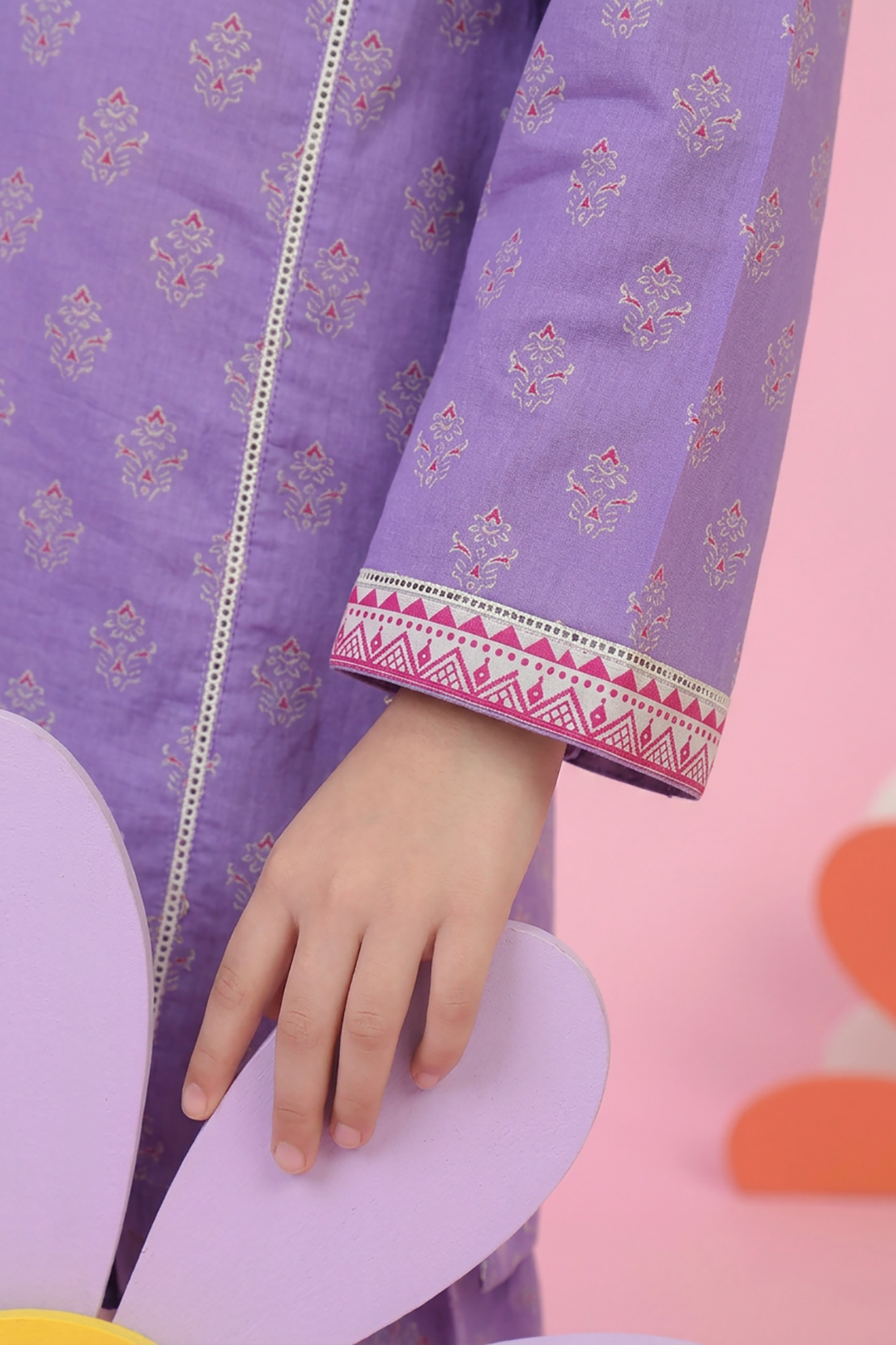 Girls Essential Pret Lawn Kurta Trouser 2 Piece In Purple Color