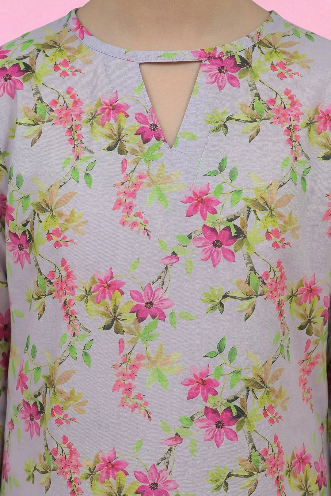 Girls Essential Pret Lawn Kurta Trouser 2 Piece In Sky Blue Color