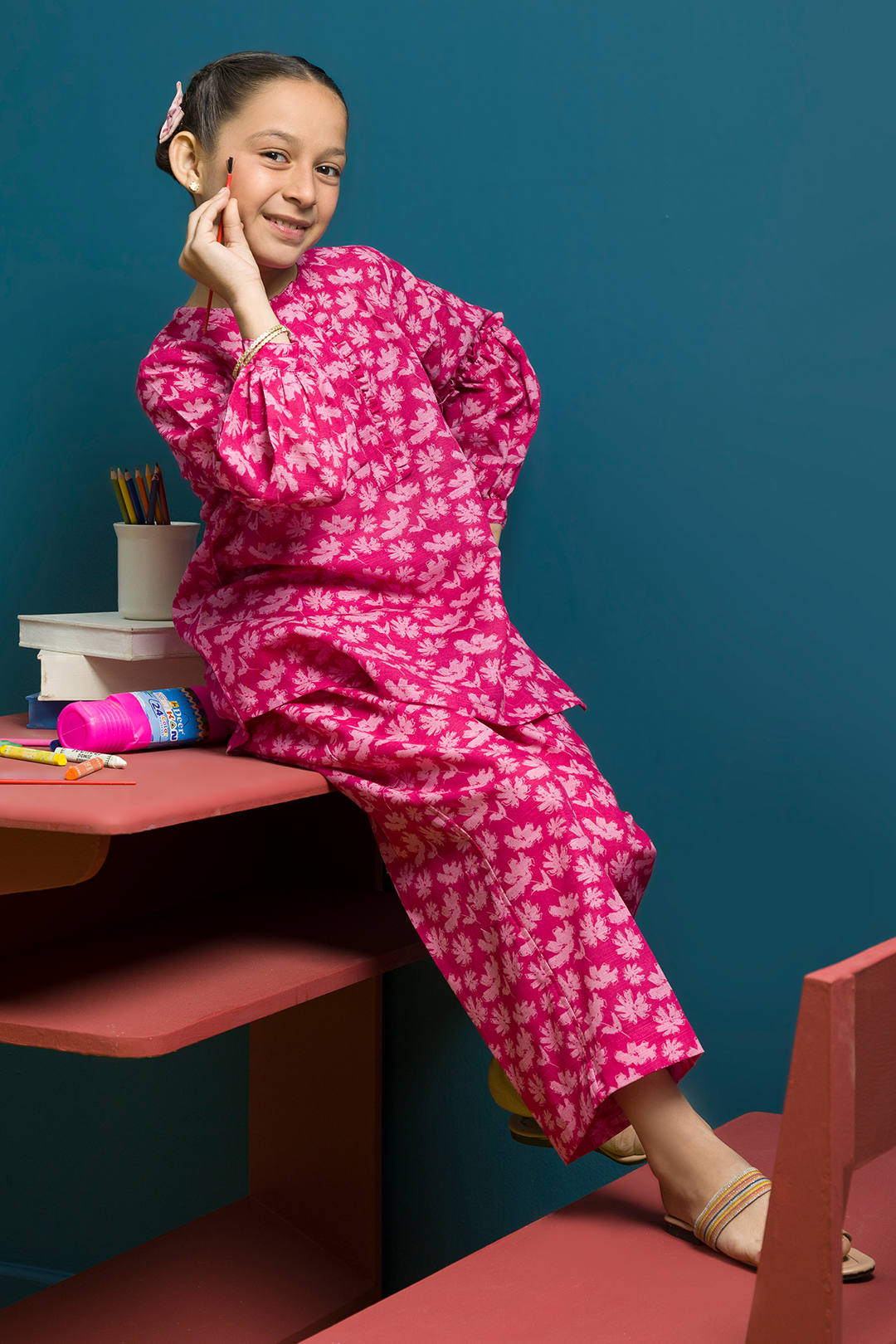 Girls Essential Pret Khaddar Kurta Trouser 2 Piece In Pink Color