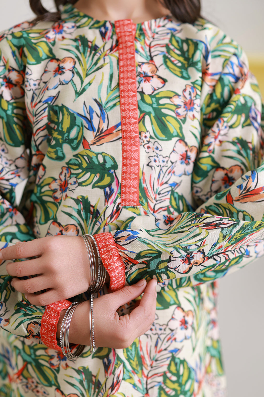 Girls Essential Pret Khaddar Kurta Trouser 2 Piece In Cream Color
