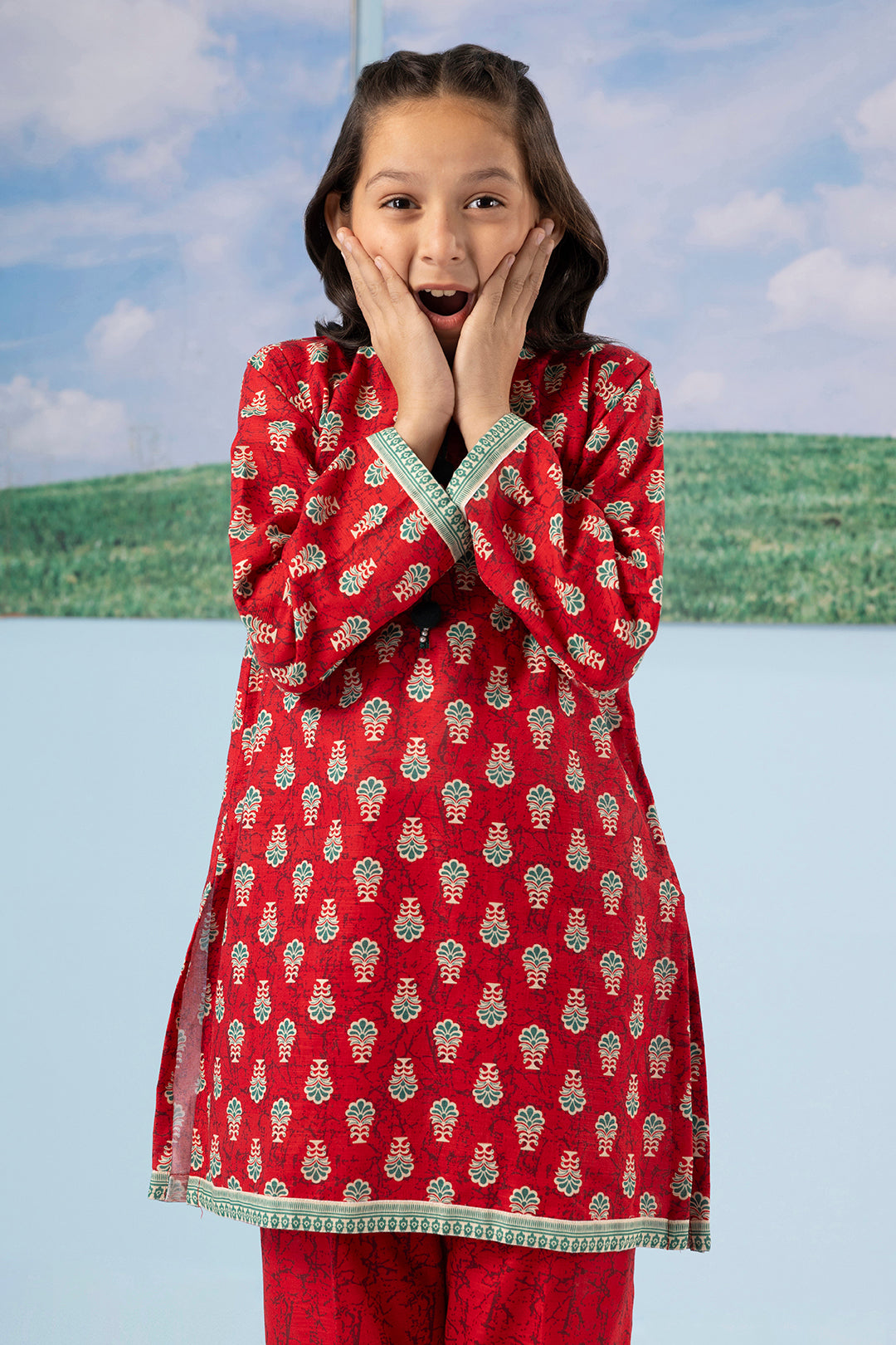 Girls Essential Pret Khaddar Kurta Trouser 2 Piece In Red Color