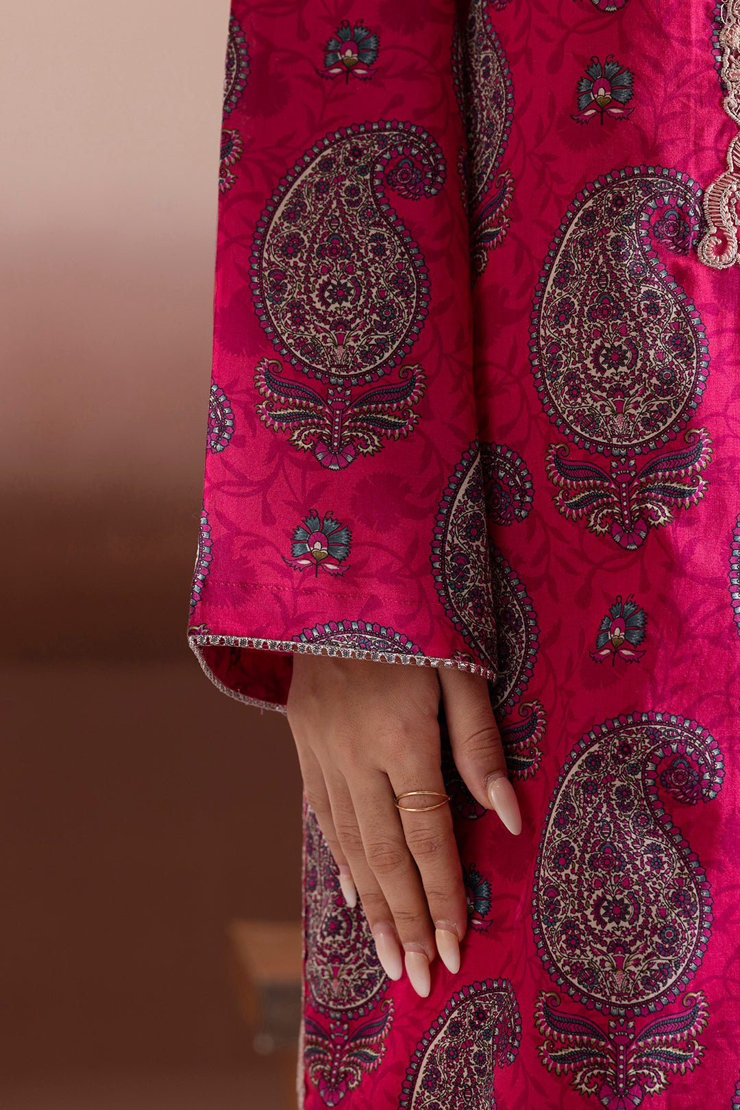 This elegantly embroidered kurta trouser set is crafted from lightweight, breathable lawn fabric, ensuring comfort throughout the day. Designed specifically for women, this pret outfit features a vibrant hot pink color that adds a touch of bold sophistication. Perfect for casual or semi-formal occasions, the detailed embroidery enhances the traditional aesthetic while maintaining a contemporary look. Its quality fabric and expert tailoring promise both style and ease of wear.