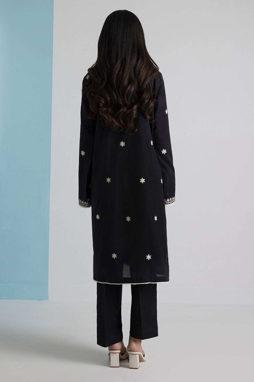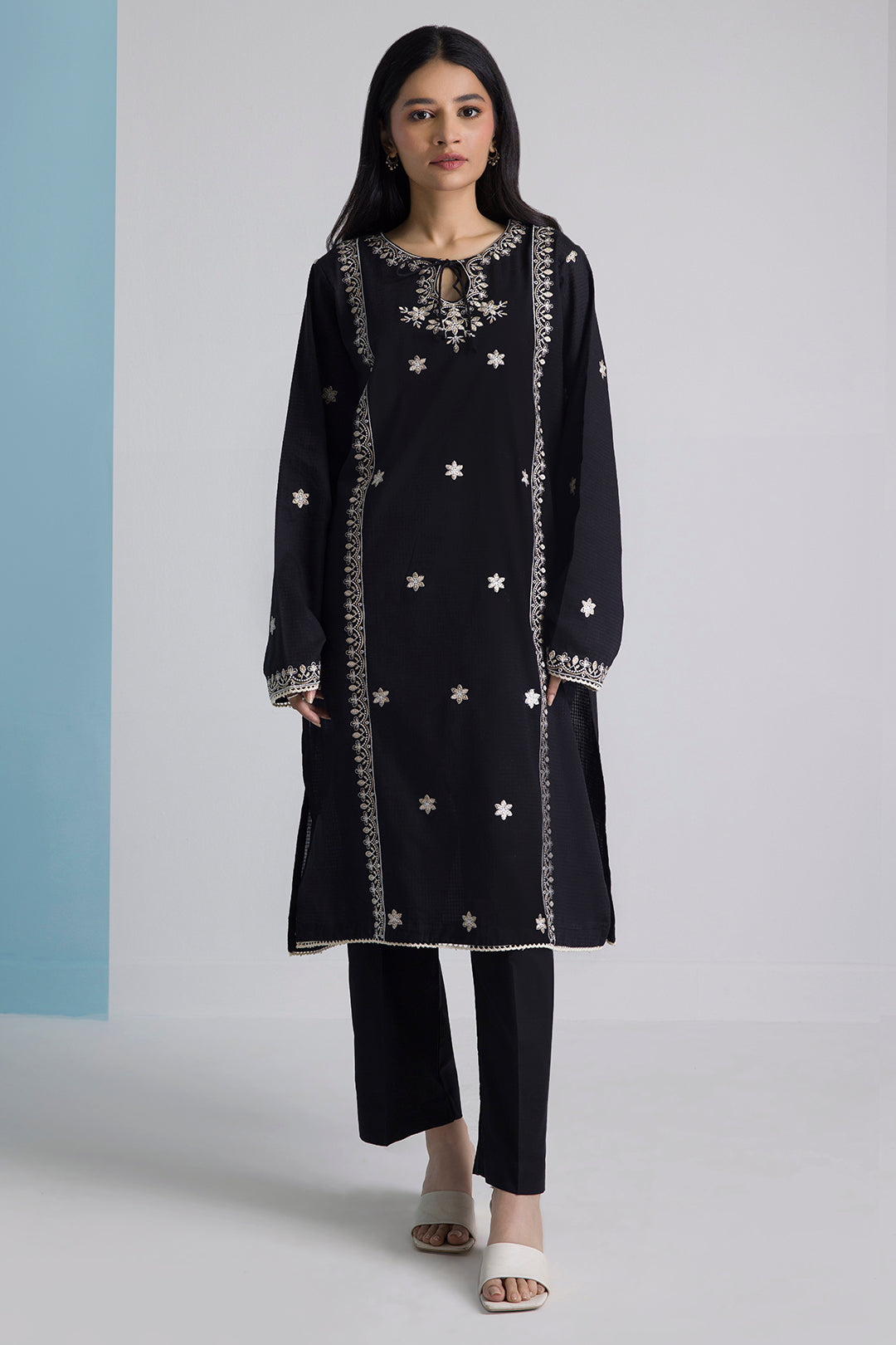 Crafted from lightweight lawn fabric, this embroidered kurta and trouser set offers refined elegance and comfort. Its intricate embroidery enhances the classic black shade, delivering a sophisticated look suitable for various occasions. Designed for women seeking effortless style, this pret ensemble combines breathable material with tailored fit for all-day ease.