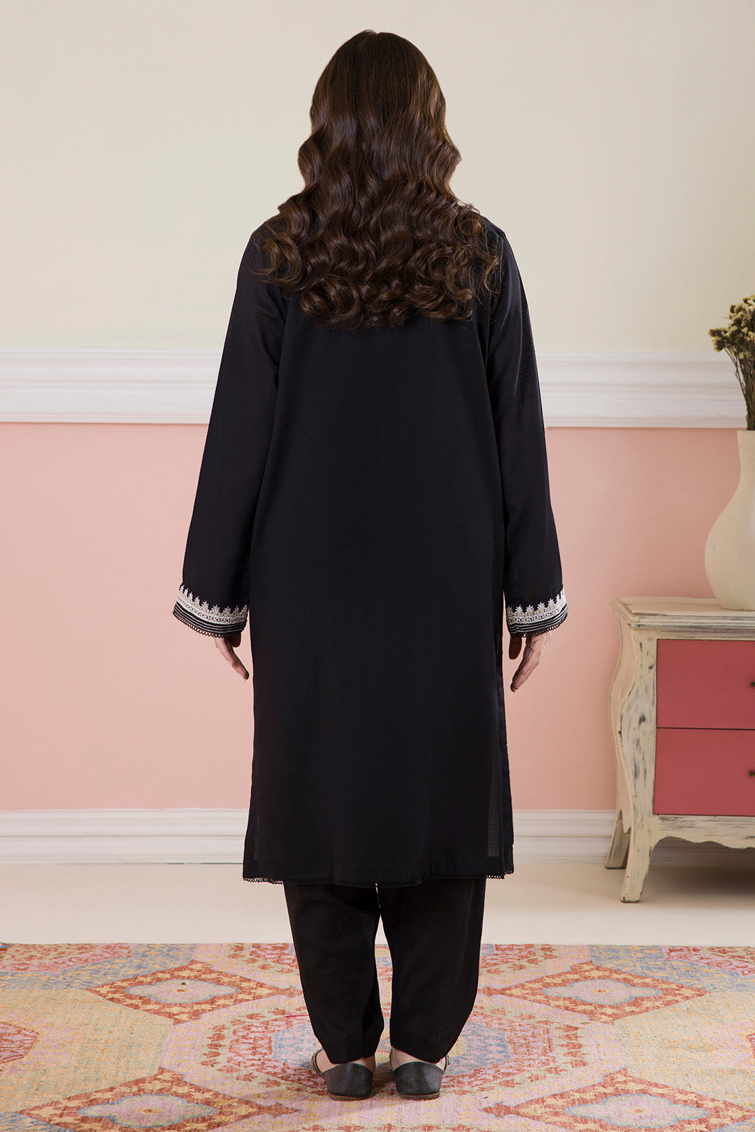 This elegant women's pret ensemble features a finely embroidered kurta paired with matching trousers, crafted from breathable lawn fabric. The black color adds a timeless sophistication, making it suitable for both casual and semi-formal occasions. Designed for comfort and style, this set offers a refined look with lightweight fabric ideal for warmer climates.