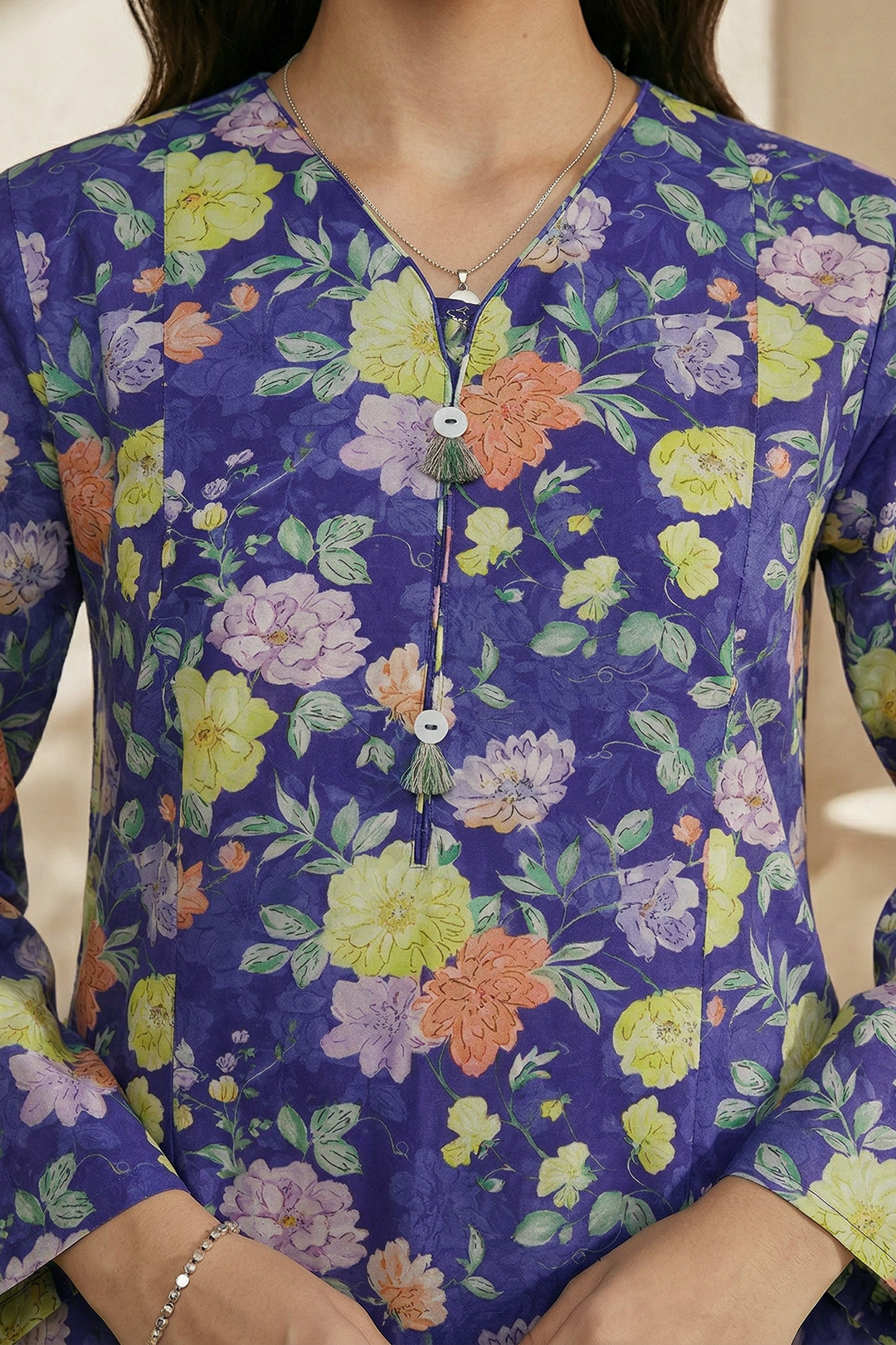 Elegant printed kurta trouser set crafted from premium lawn fabric, designed for the modern woman. This ready-to-wear pret piece features a sophisticated dark blue color with intricate prints that blend traditional aesthetics with contemporary style. Perfect for casual gatherings, family occasions, or everyday wear, the comfortable lawn material ensures breathability and ease of movement. The coordinated kurta and trouser combination offers a polished, put-together look without compromising on comfort. Ideal for those seeking quality, style, and convenience in one versatile ensemble.