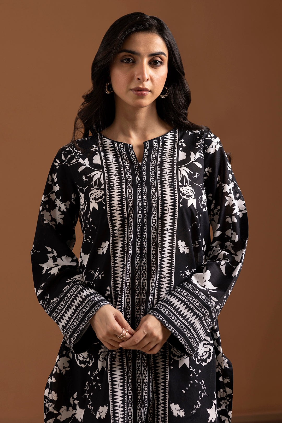 This elegant women's kurta trouser set features premium cambric fabric for breathable comfort and durability. The printed black kurta pairs effortlessly with matching trousers, offering a sophisticated and polished look suitable for casual or semi-formal occasions. Its pret design ensures a ready-to-wear fit that combines style with ease. Ideal for those seeking timeless elegance with everyday practicality.