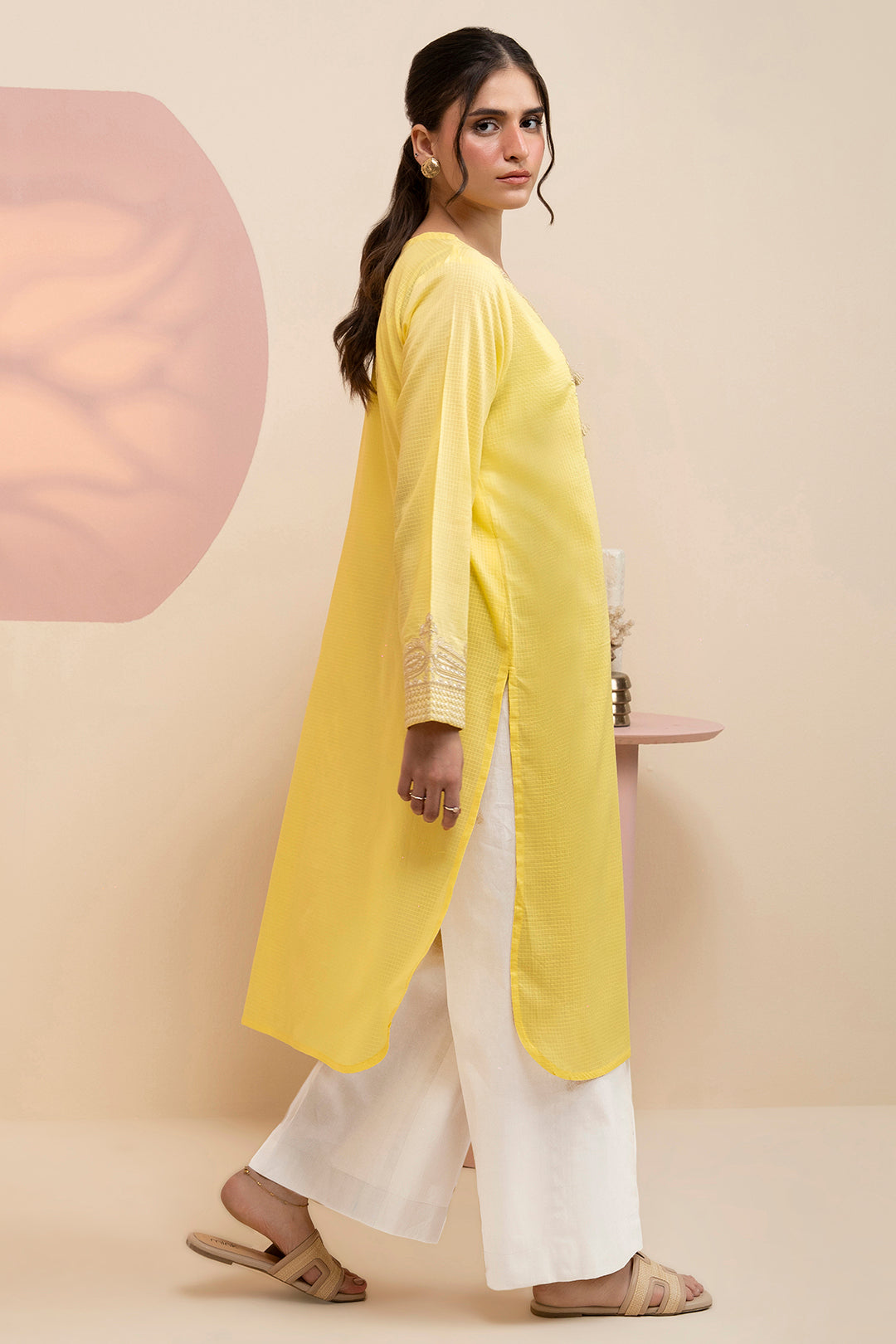 This elegantly embroidered kurta in light yellow is crafted from breathable lawn fabric, making it ideal for warm weather. Designed for women who appreciate ready-to-wear comfort, it offers a refined look with intricate detailing that enhances any casual or semi-formal ensemble. Perfect for adding a touch of sophistication to your everyday wardrobe.