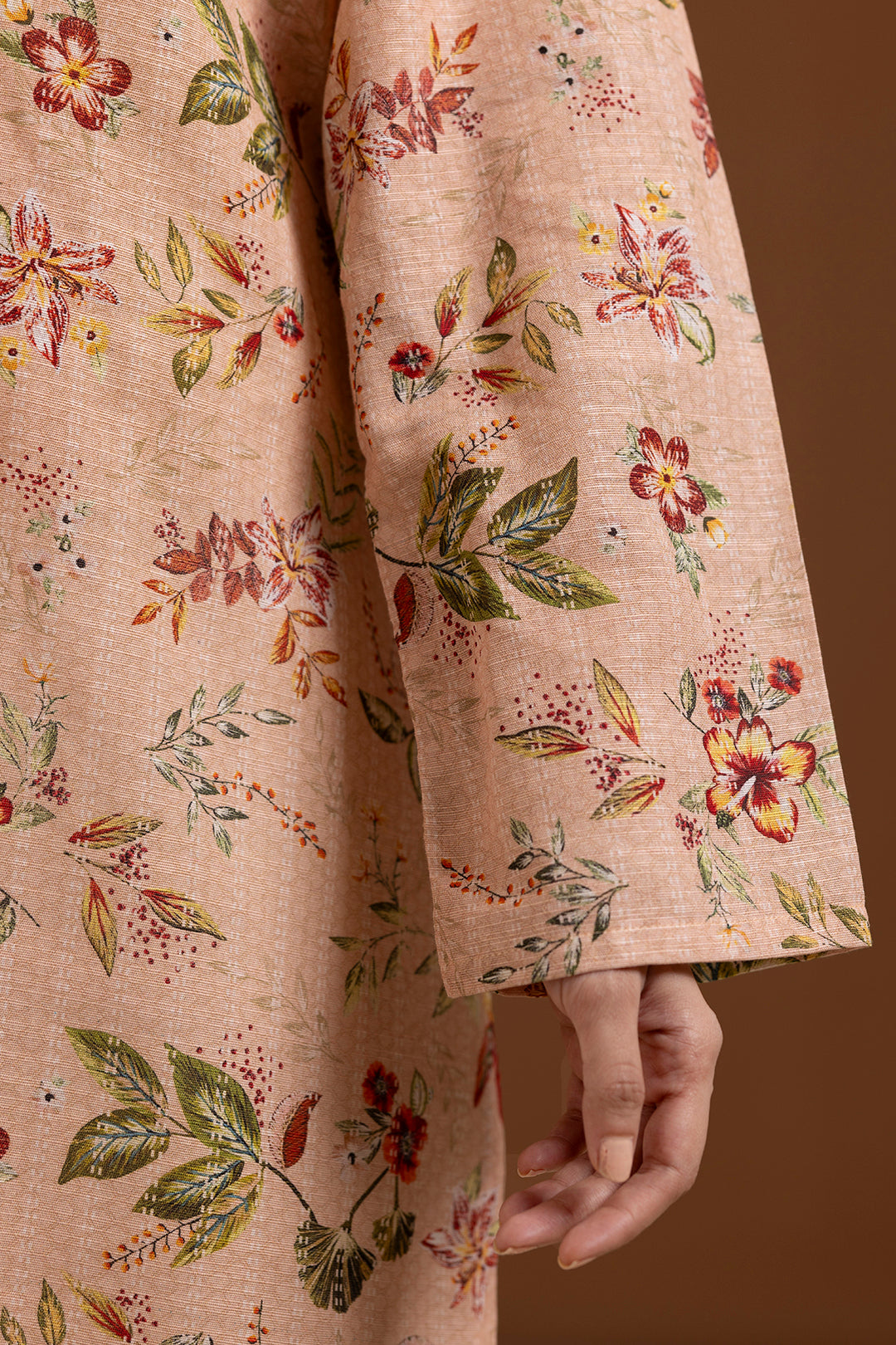 This women's kurta in a soft peach shade is crafted from breathable Khaddar fabric, offering comfortable wear for everyday and casual occasions. The printed design adds subtle style, while the pret-ready finish ensures an easy, tailored fit. Ideal for those seeking a blend of traditional texture with modern comfort.