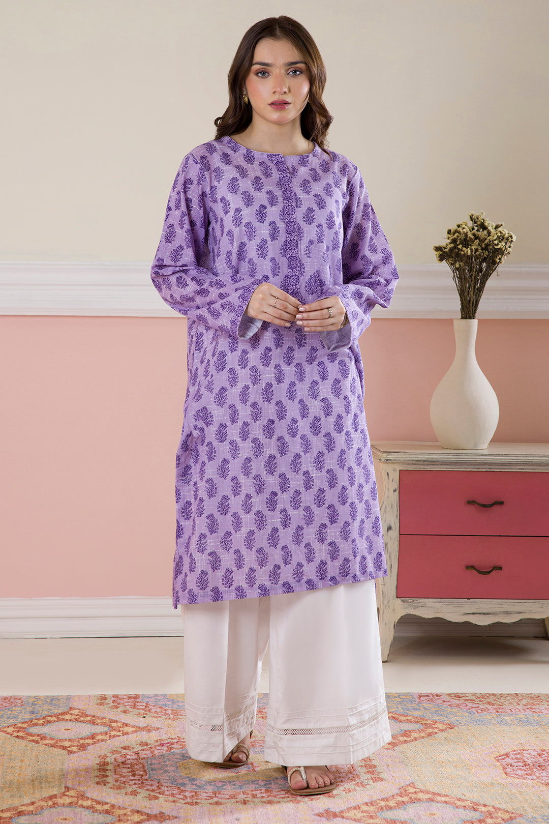 This elegant women's kurta is crafted from soft Khaddar fabric, ensuring comfort and durability. The rich purple shade adds a vibrant yet sophisticated touch, making it ideal for everyday pret wear. Its printed design brings subtle style, perfect for casual or semi-formal occasions. Designed to offer a flattering fit, this kurta combines traditional fabric with contemporary appeal.