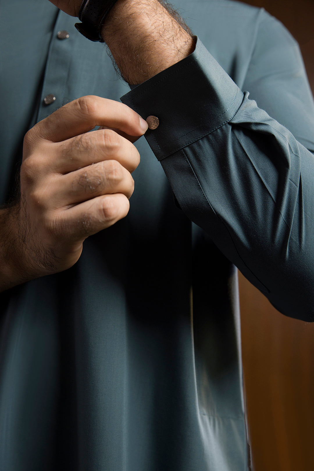 The Marvel Shalwar Kameez - 6112 features a blended fabric crafted for durability and comfort, perfect for men seeking traditional Eastern wear with a contemporary touch. Its rich teal color adds a distinguished look suitable for both casual and formal occasions. Designed to provide a comfortable fit, this set blends cultural heritage with modern style, ensuring you look polished while enjoying ease of movement throughout your day.