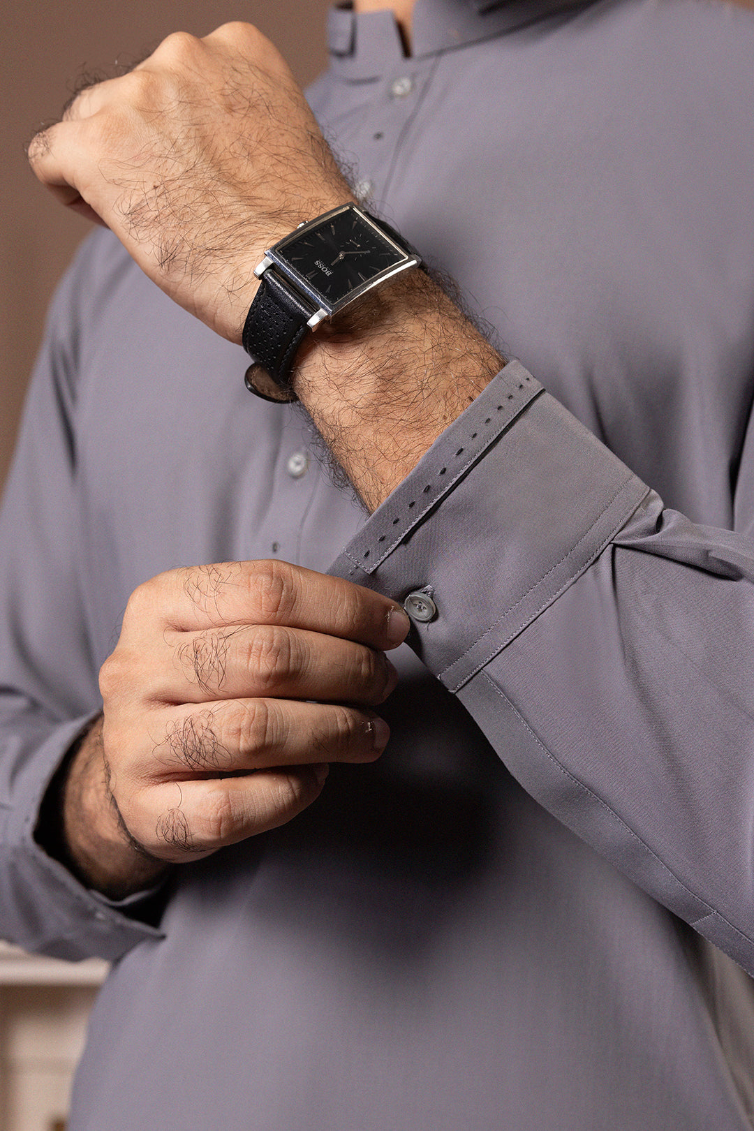 This Marvel Shalwar Kameez combines traditional Eastern style with modern comfort. Crafted from a blended fabric, it offers durability and ease of wear. The dark grey color and band collar lend a refined, contemporary look ideal for formal or casual occasions. Designed specifically for men, it ensures a tailored fit that upholds cultural elegance while providing everyday practicality.