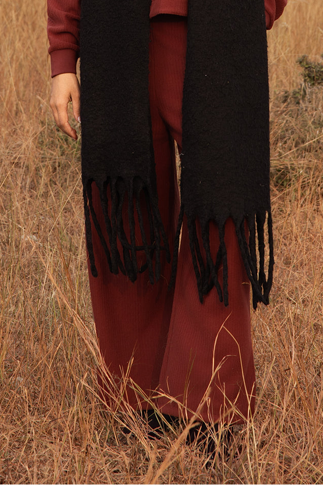 High-waisted Rust tailored-fit trousers in drop needle - polar fleece fabric, featuring side pockets and a wide leg. Perfect for keeping you polished and warm.
