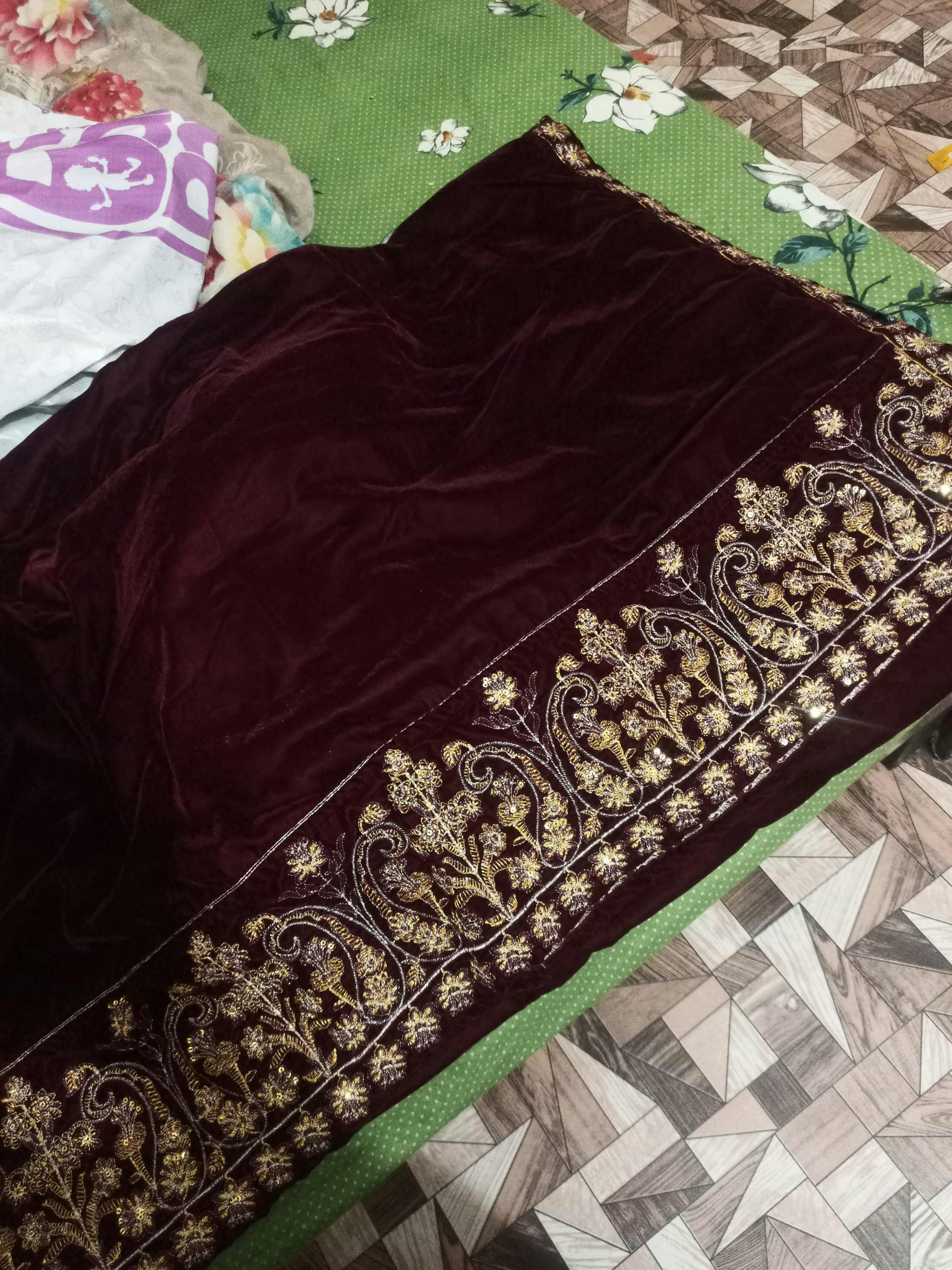 Experience elegance with this maroon zari embroidered velvet women's shawl, designed to provide warmth and a luxurious feel. Its rich color and soft fabric make it an ideal accessory for both casual and formal occasions, ensuring comfort while enhancing your outfit's sophistication.