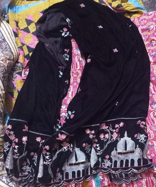 This Zari embroidered brown velvet shawl offers a luxurious feel and elegant drape, perfect for adding warmth and sophistication to any outfit. Its rich fabric ensures comfort while providing a stylish layer suitable for cooler weather. Ideal for formal occasions or daily wear, this shawl combines functionality with timeless appeal.