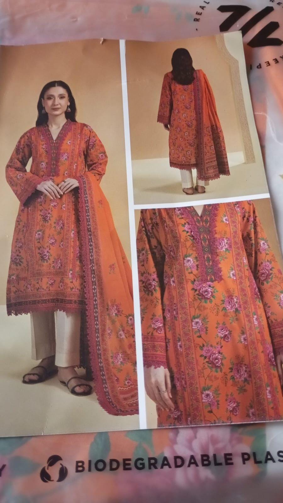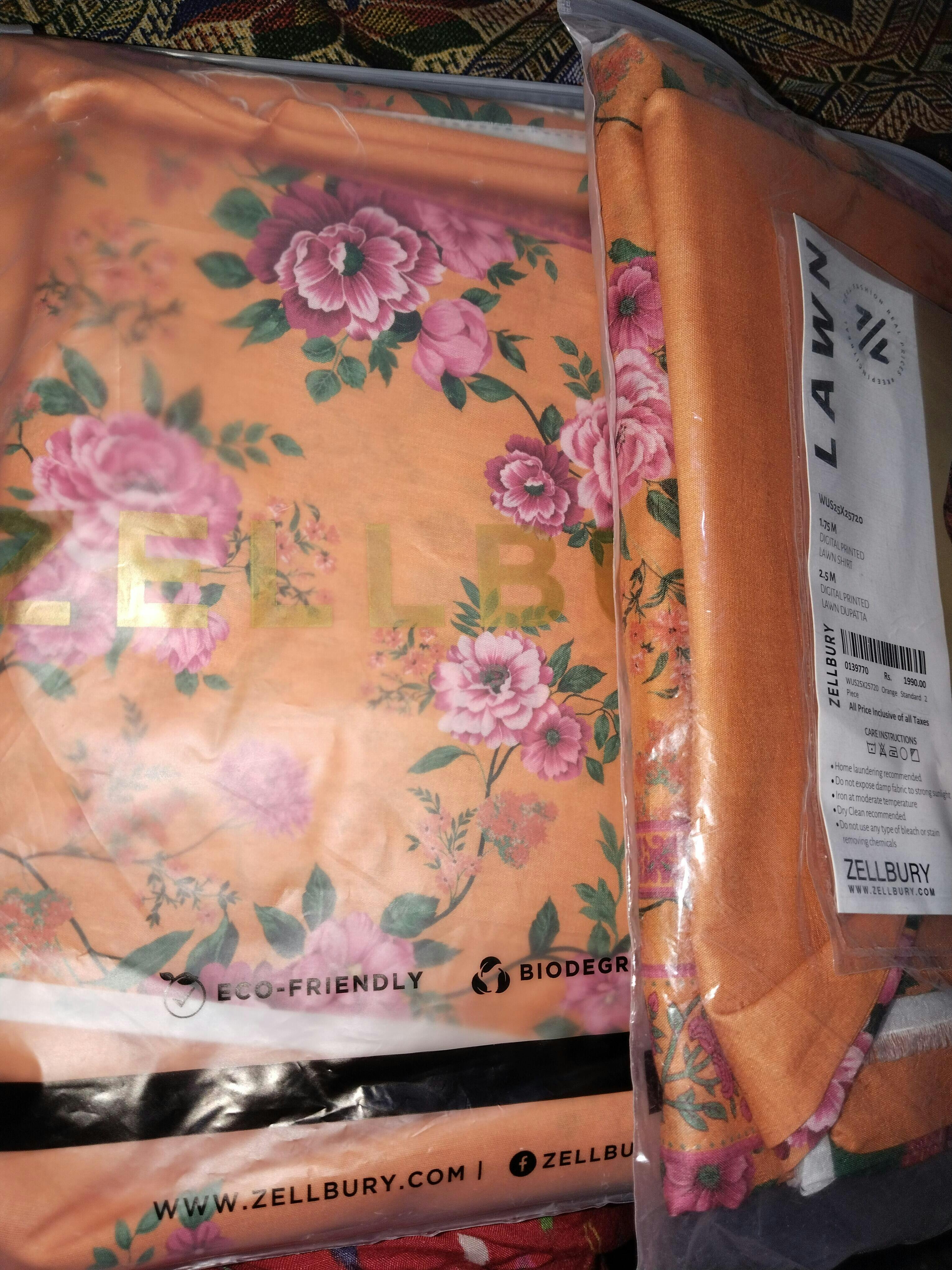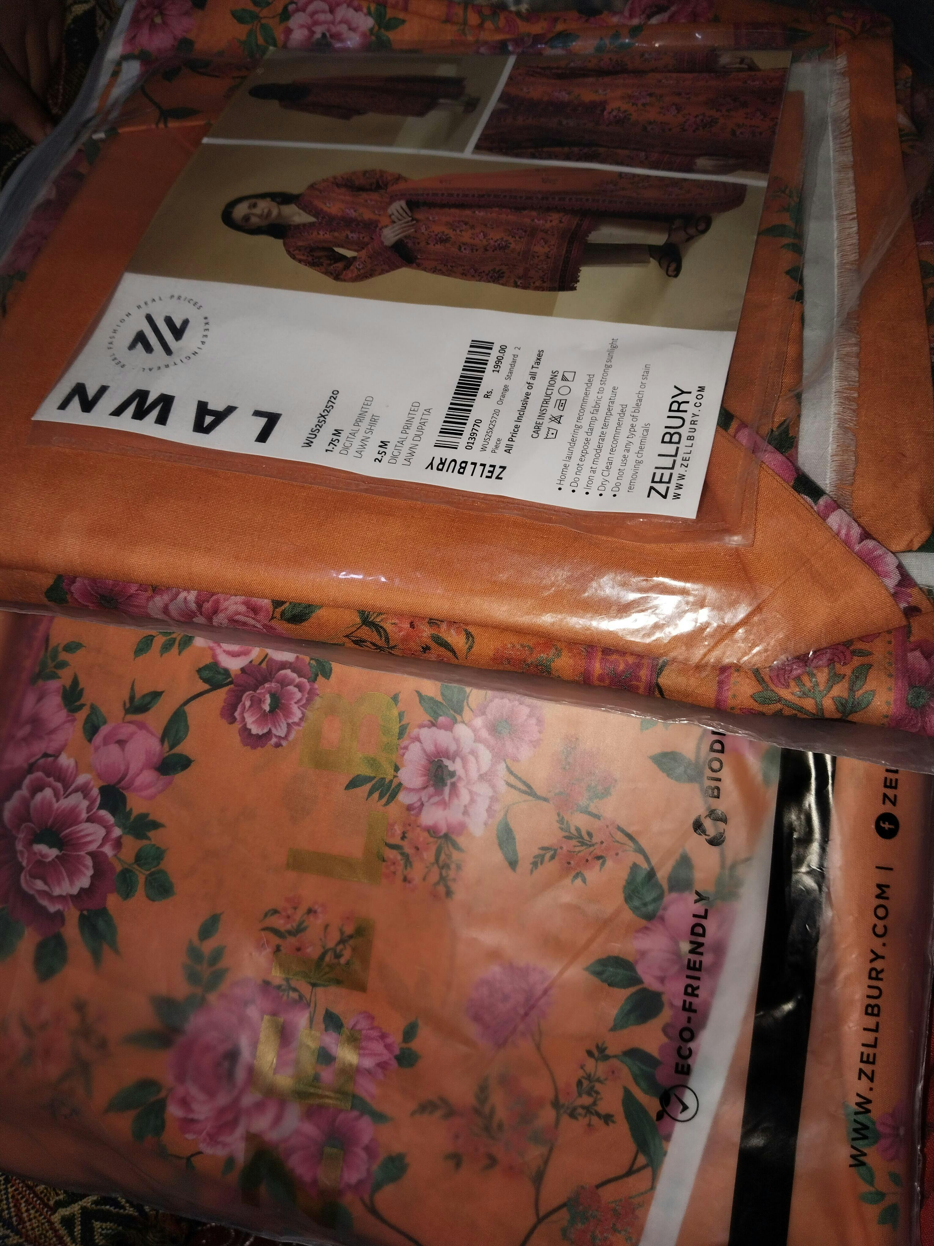 Buy 2 Piece Printed Lawn Shirt Dupatta in Orange Color