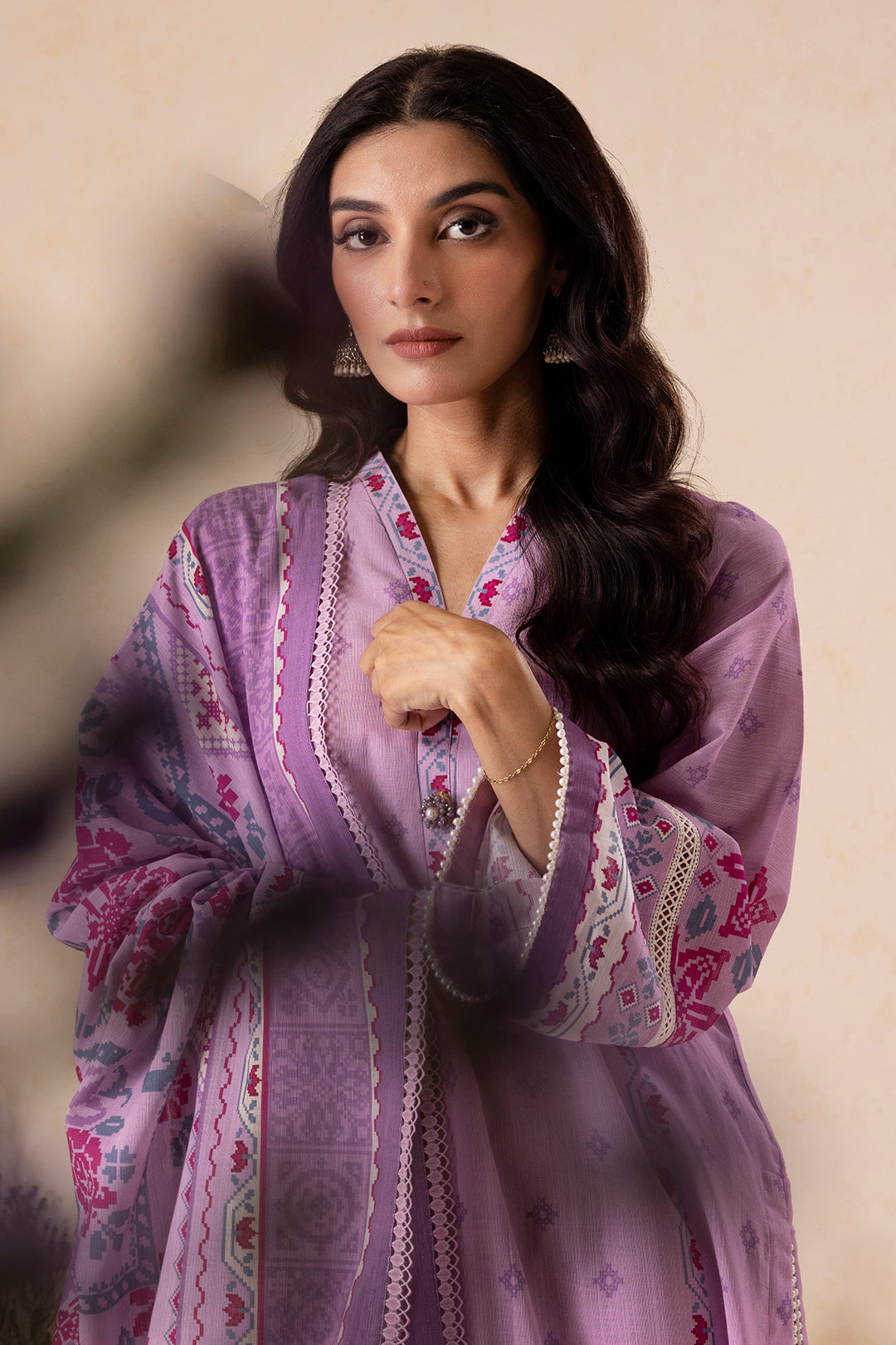 Buy 2 Piece Printed Khaddar Shirt Dupatta in Lilac Color
