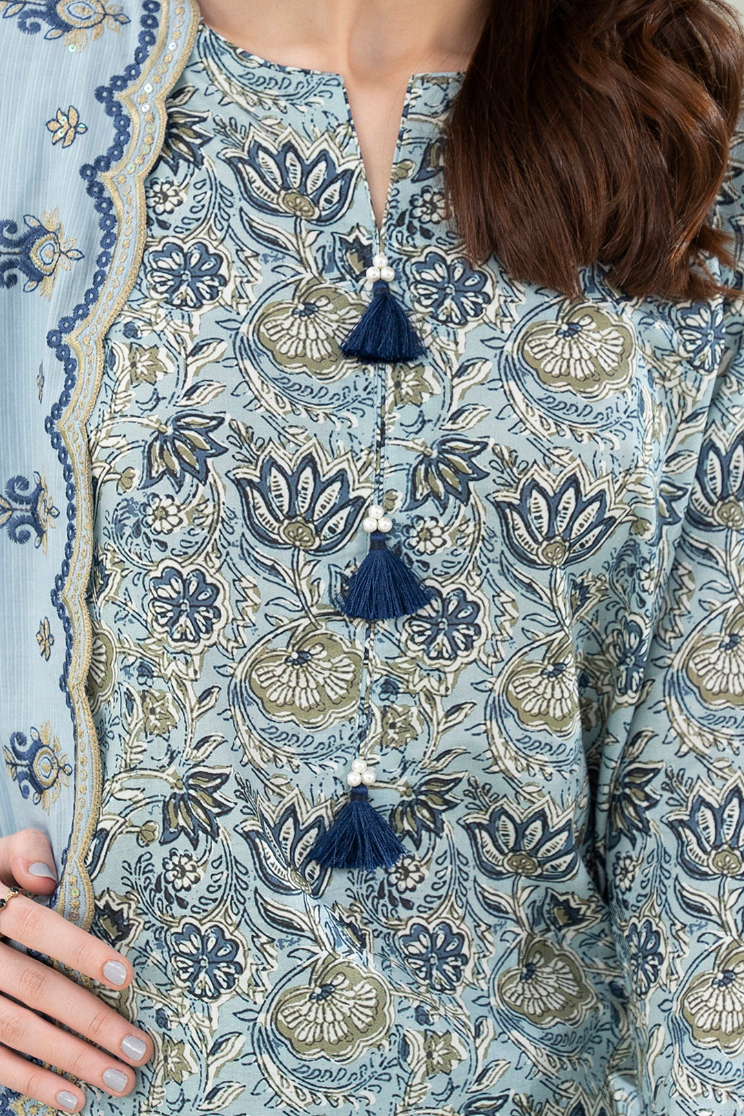 Buy 3 Piece Embroidered Cambric Shirt Shalwar Dupatta in Grey Color