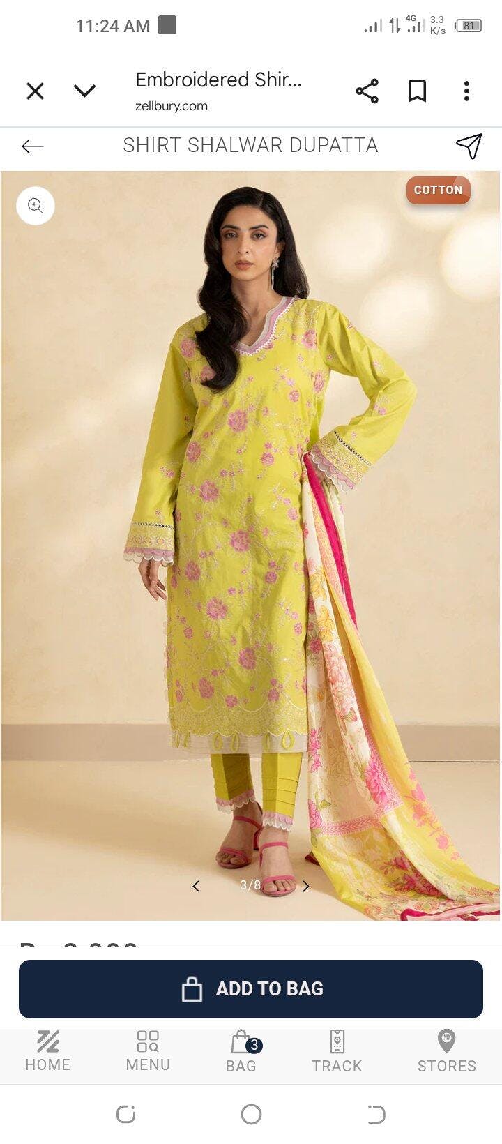 Buy 3 Piece Embroidered Cotton Shirt Shalwar Dupatta in Parrot Green Color