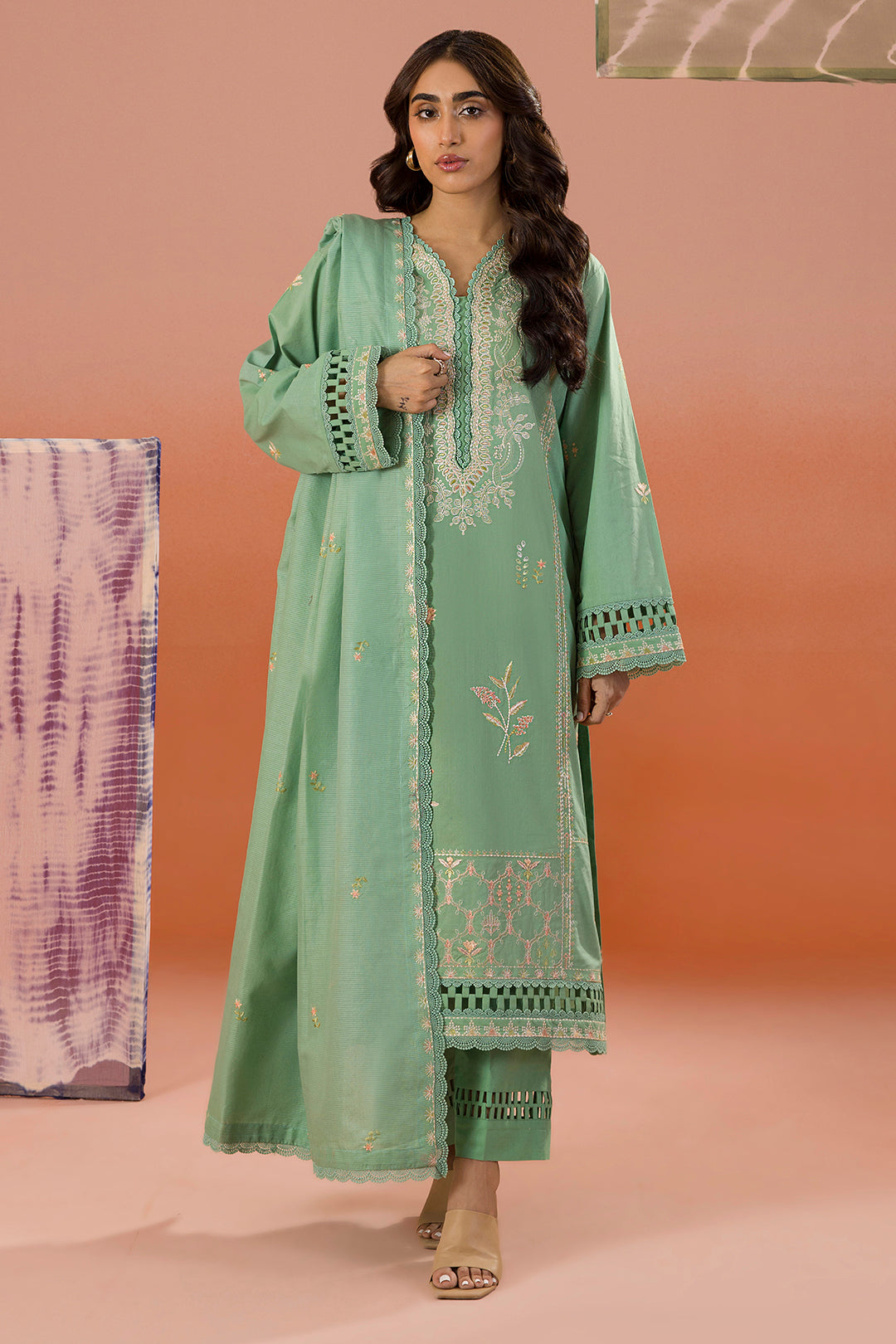 Buy 3 Piece Embroidered Cotton Shirt Shalwar Dupatta in Green Color