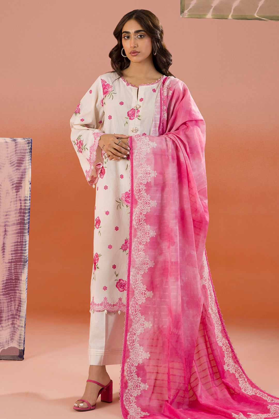 Buy 3 Piece Embroidered Cotton Shirt Shalwar Dupatta in Pink Color