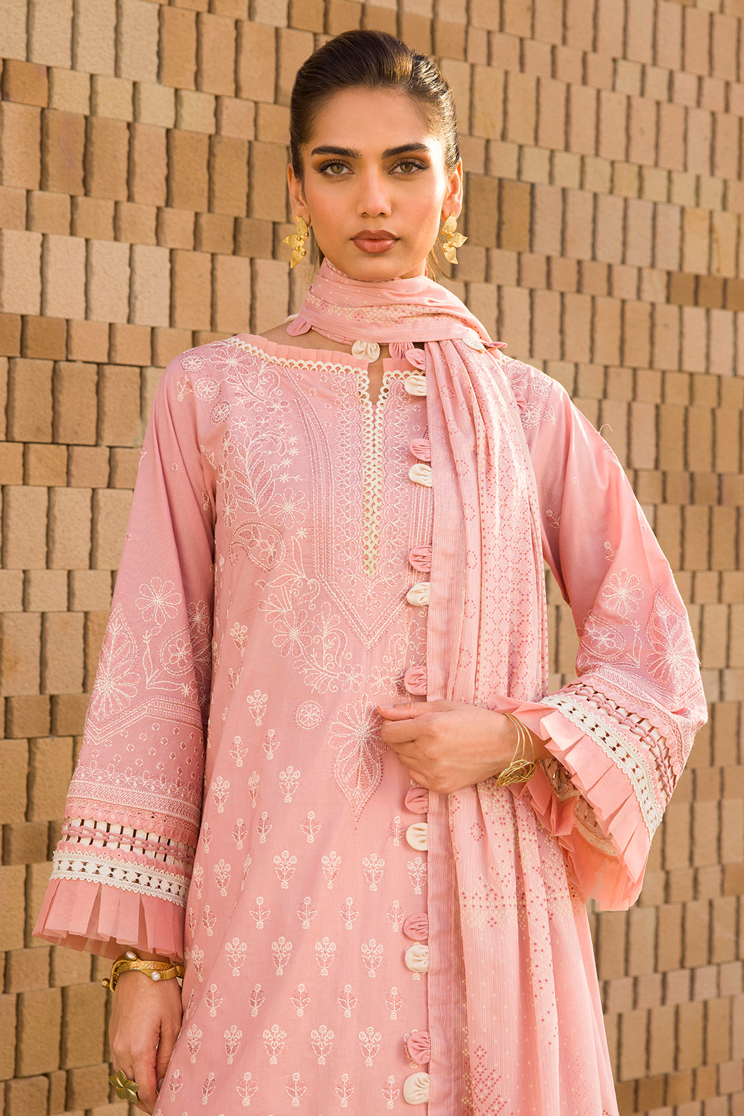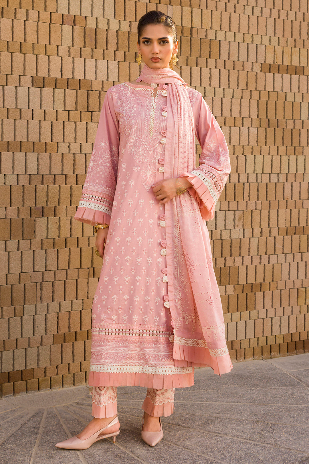 This elegant three-piece set features a beautifully embroidered cotton shirt paired with a matching shalwar and a delicate dupatta in a soft pink hue. Crafted with intricate Chikankari embroidery, this ensemble offers breathable comfort and timeless style, making it ideal for both casual and formal occasions. Experience sophisticated design merged with traditional craftsmanship for a graceful and comfortable outfit.