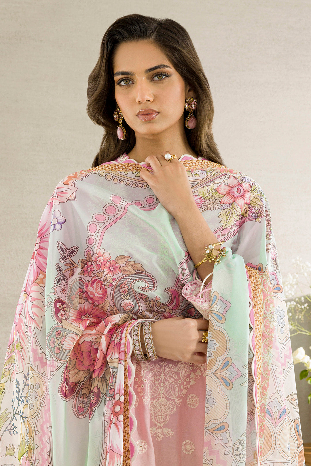 Experience elegance with this 3-piece set featuring an embroidered cotton shirt, matching shalwar, and delicate dupatta in soft light pink. The intricate Chikankari embroidery adds timeless craftsmanship to breathable cotton fabric, ensuring comfort and style for every occasion. Perfectly balanced, this ensemble offers a refined look while keeping you cool and comfortable throughout the day.
