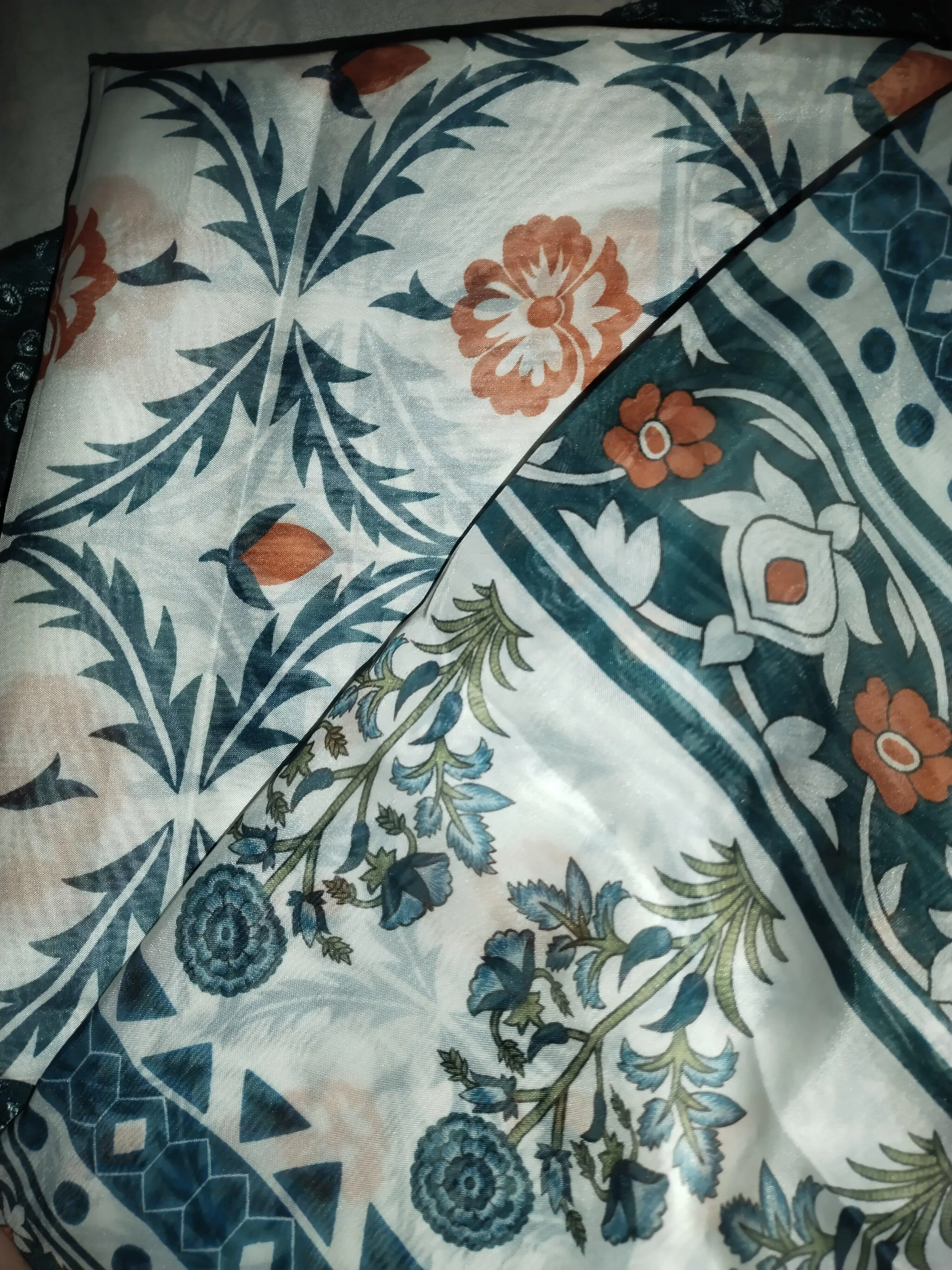 Buy 3 Piece Embroidered Dobby Shirt Shalwar Dupatta in Teal Color