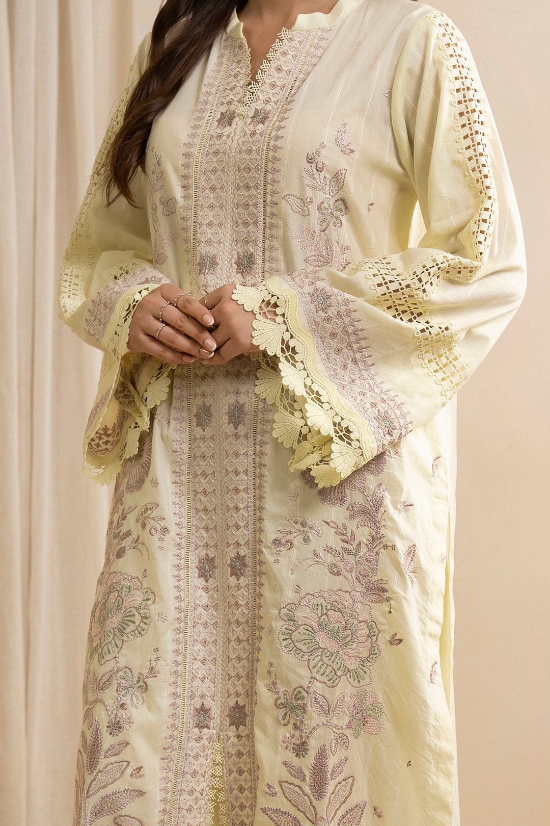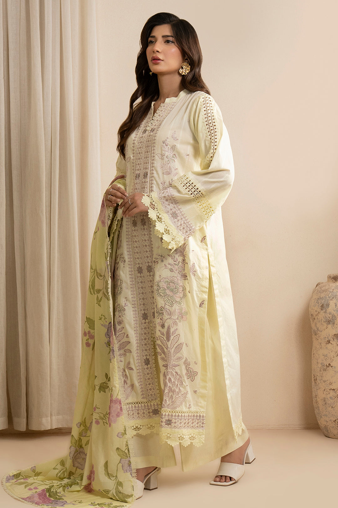Buy 3 Piece Embroidered Lawn Shirt Shalwar Dupatta in Lemon Yellow Color