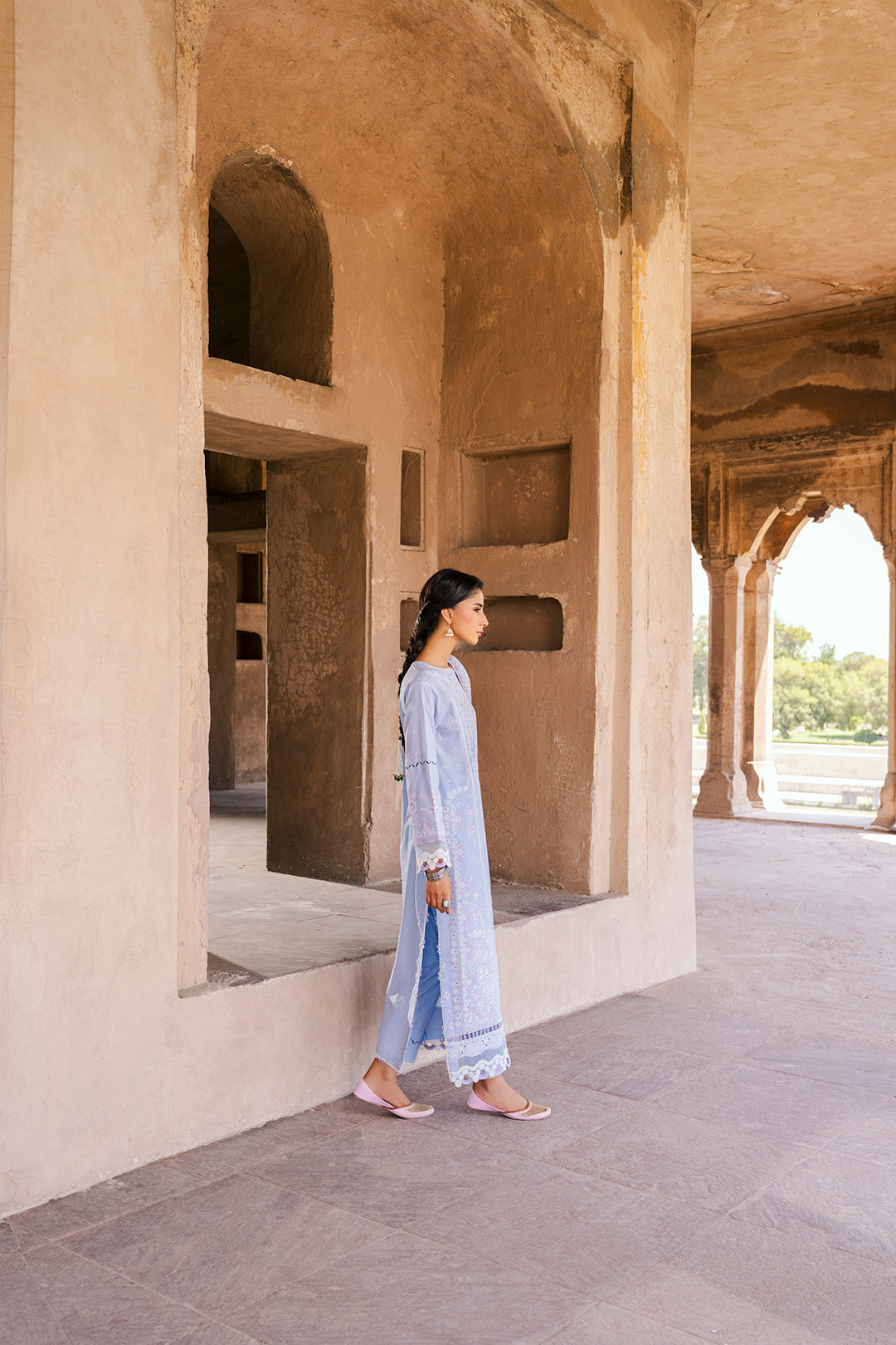 This elegant 3-piece set features a finely embroidered lawn shirt paired with matching shalwar and dupatta in a sophisticated grey shade. Crafted with intricate Chikankari embroidery, it offers a blend of traditional artistry and contemporary style. The breathable lawn fabric ensures comfort, making it ideal for warm weather while maintaining a polished, refined look suitable for various occasions.