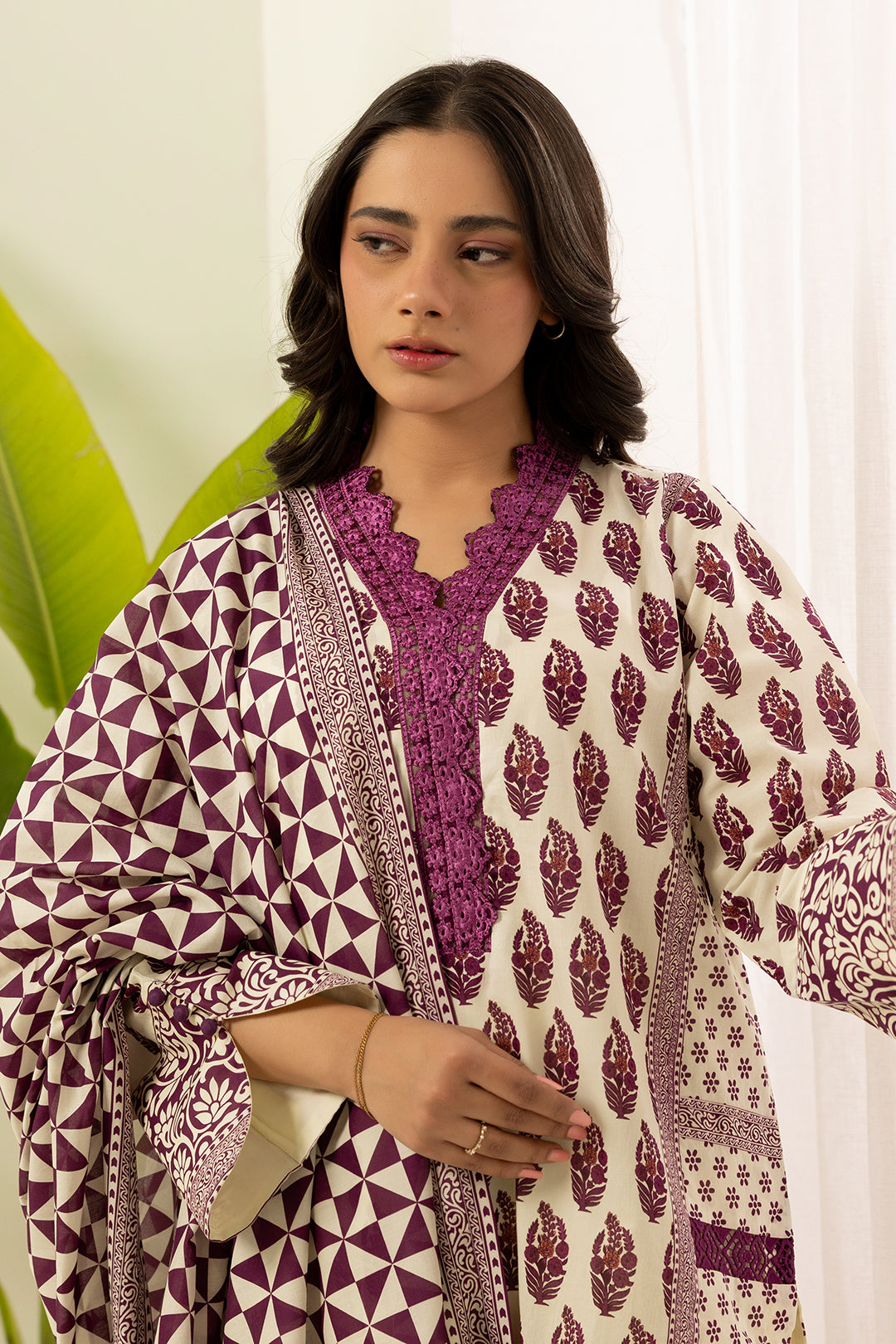 Buy 3 Piece Printed Lawn Shirt Shalwar Dupatta in Purple Color