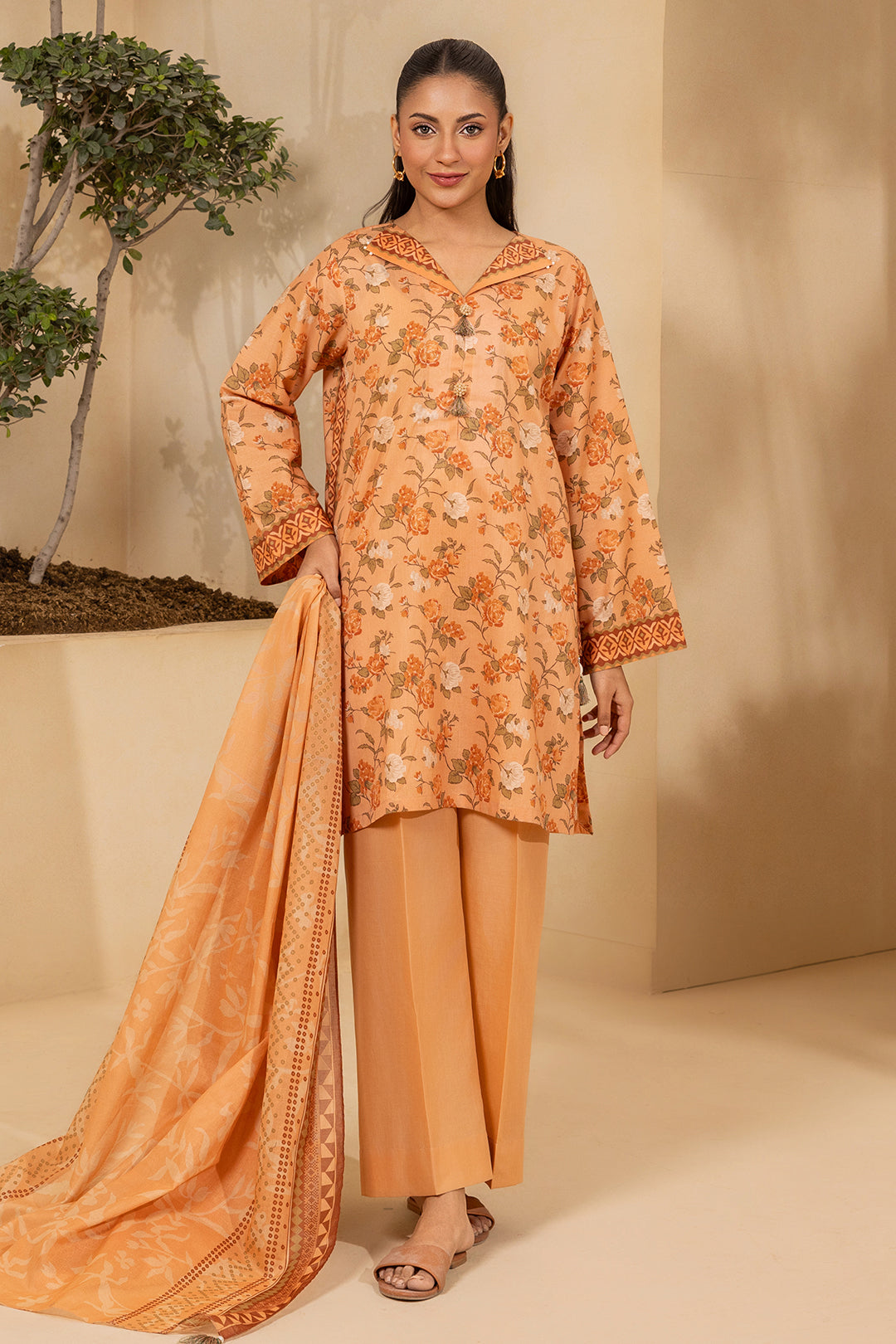 Buy 3 Piece Printed Lawn Shirt Shalwar Dupatta in Peach Color