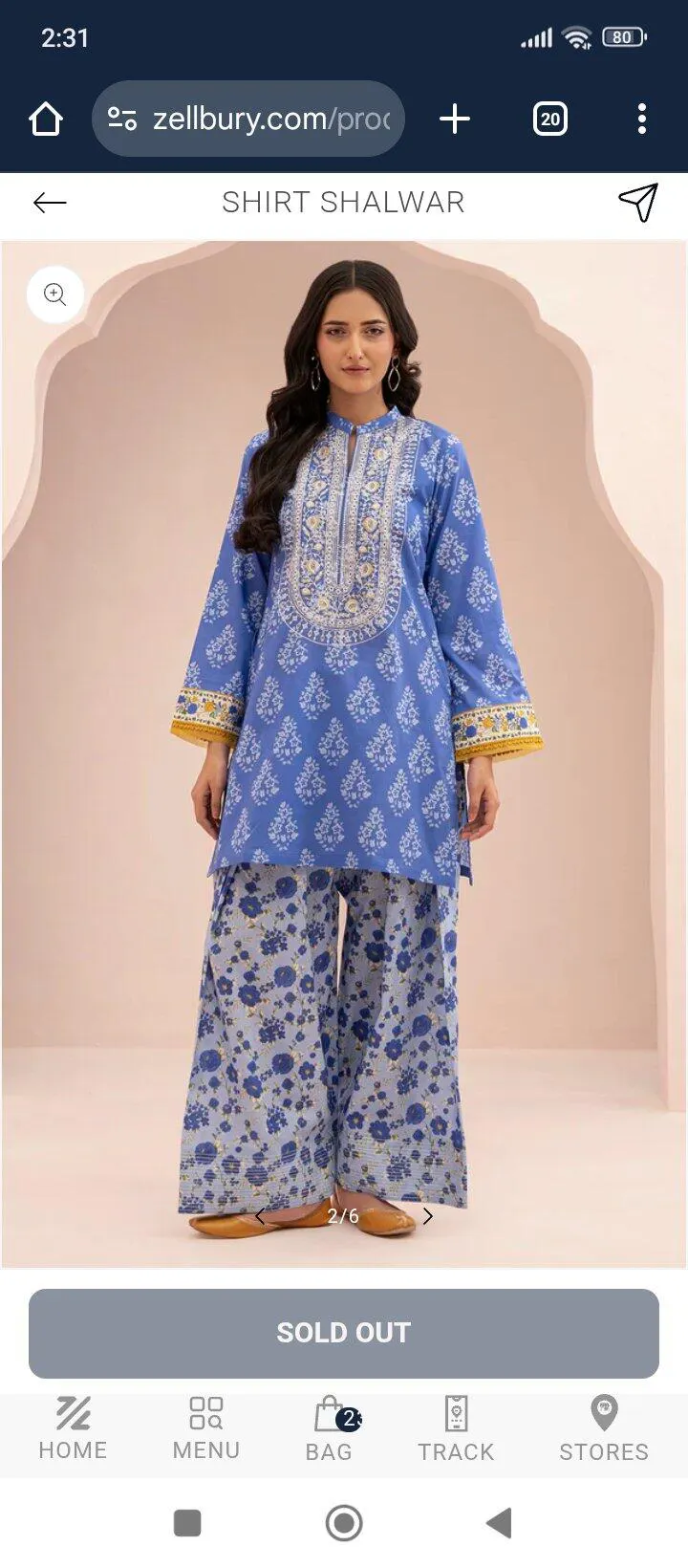 Buy 2 Piece Embroidered Lawn Shirt Shalwar in Blue Color