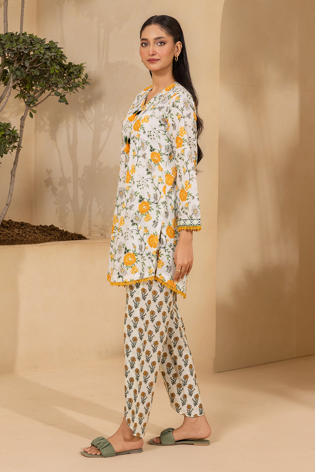 Buy 2 Piece Printed Lawn Shirt Shalwar in Off White Color