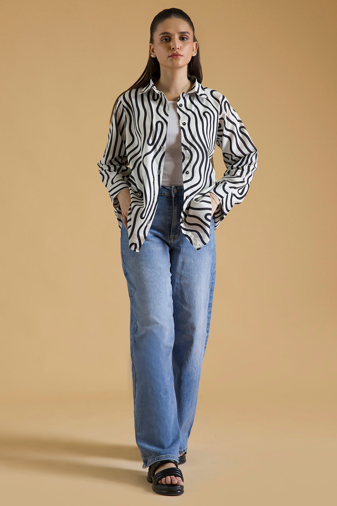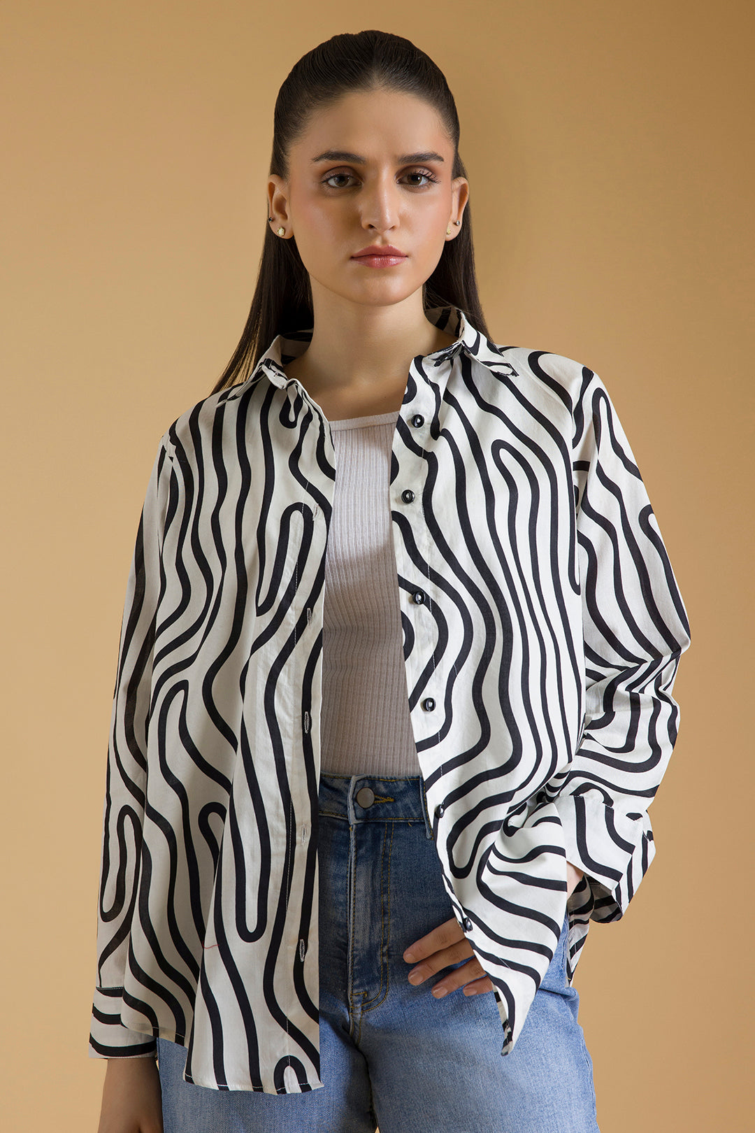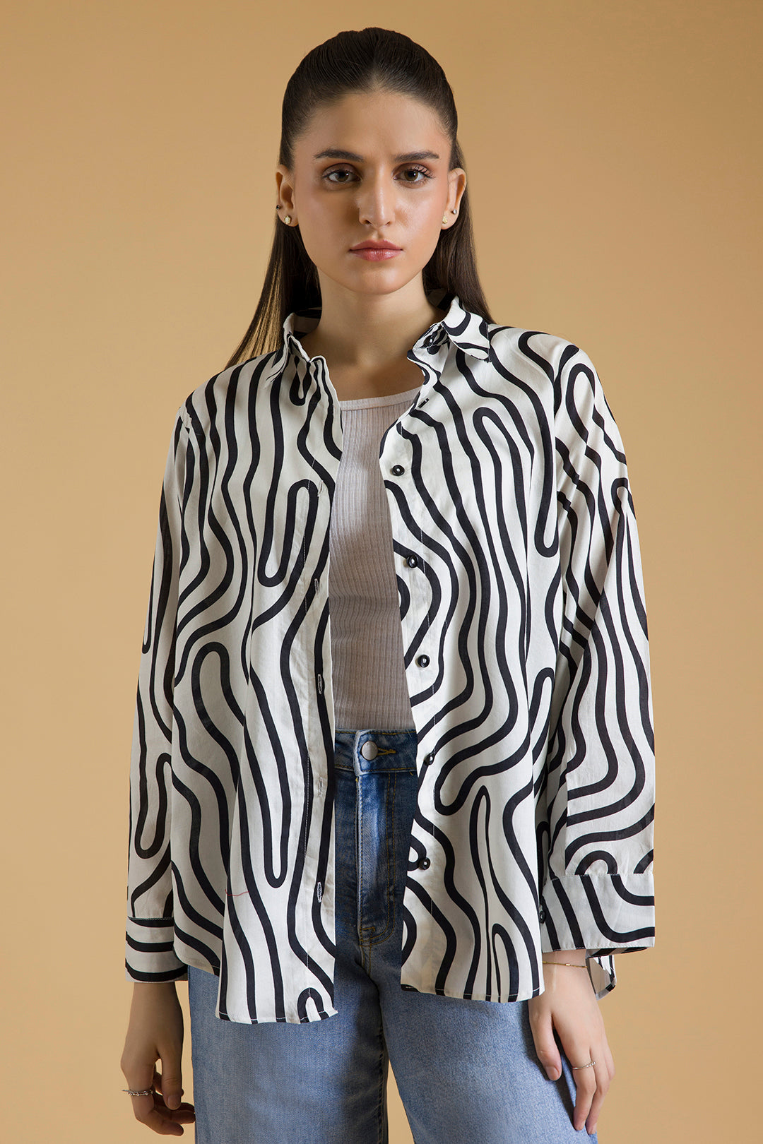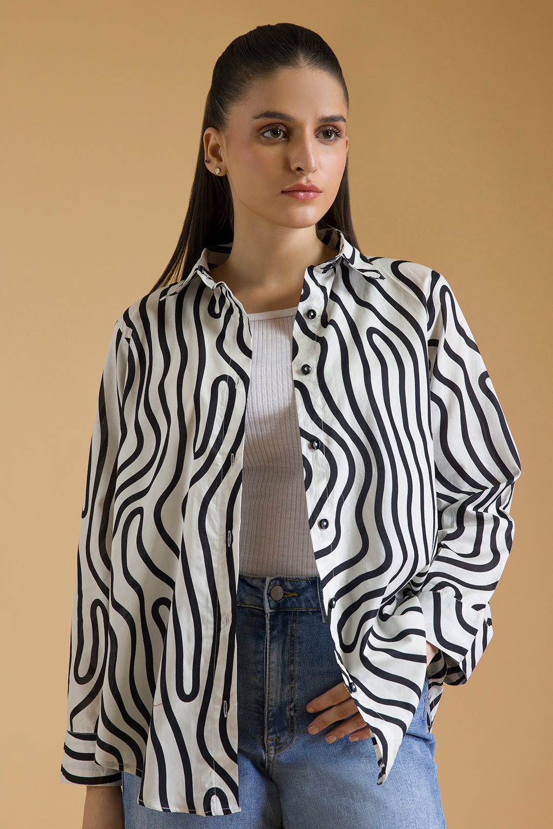 This white women's shirt is crafted from fine cambric fabric, offering a lightweight, breathable feel ideal for daily wear. Its printed pattern adds subtle elegance while maintaining comfort and durability. Perfect for a polished yet relaxed look, this shirt balances style with practicality.