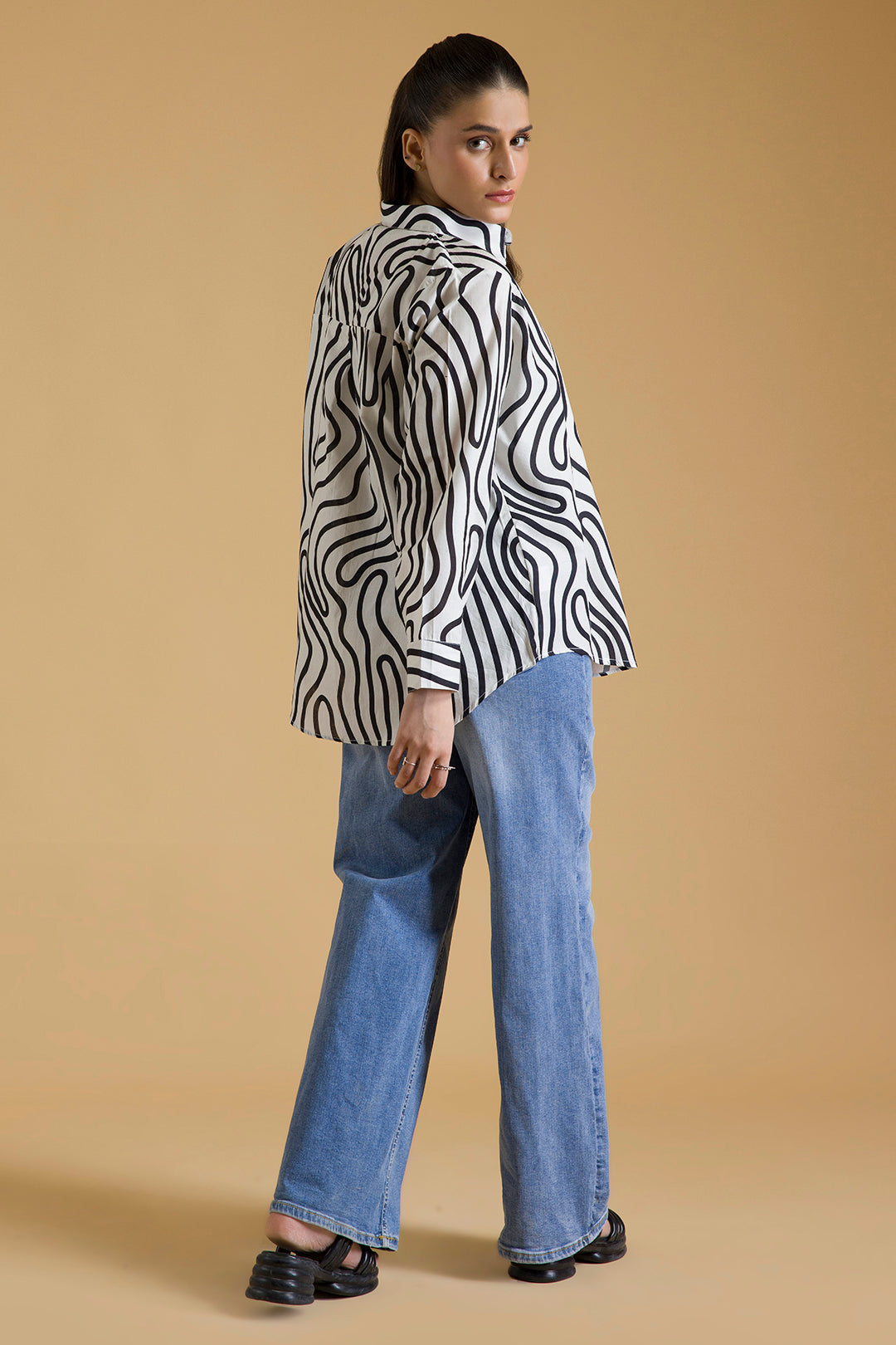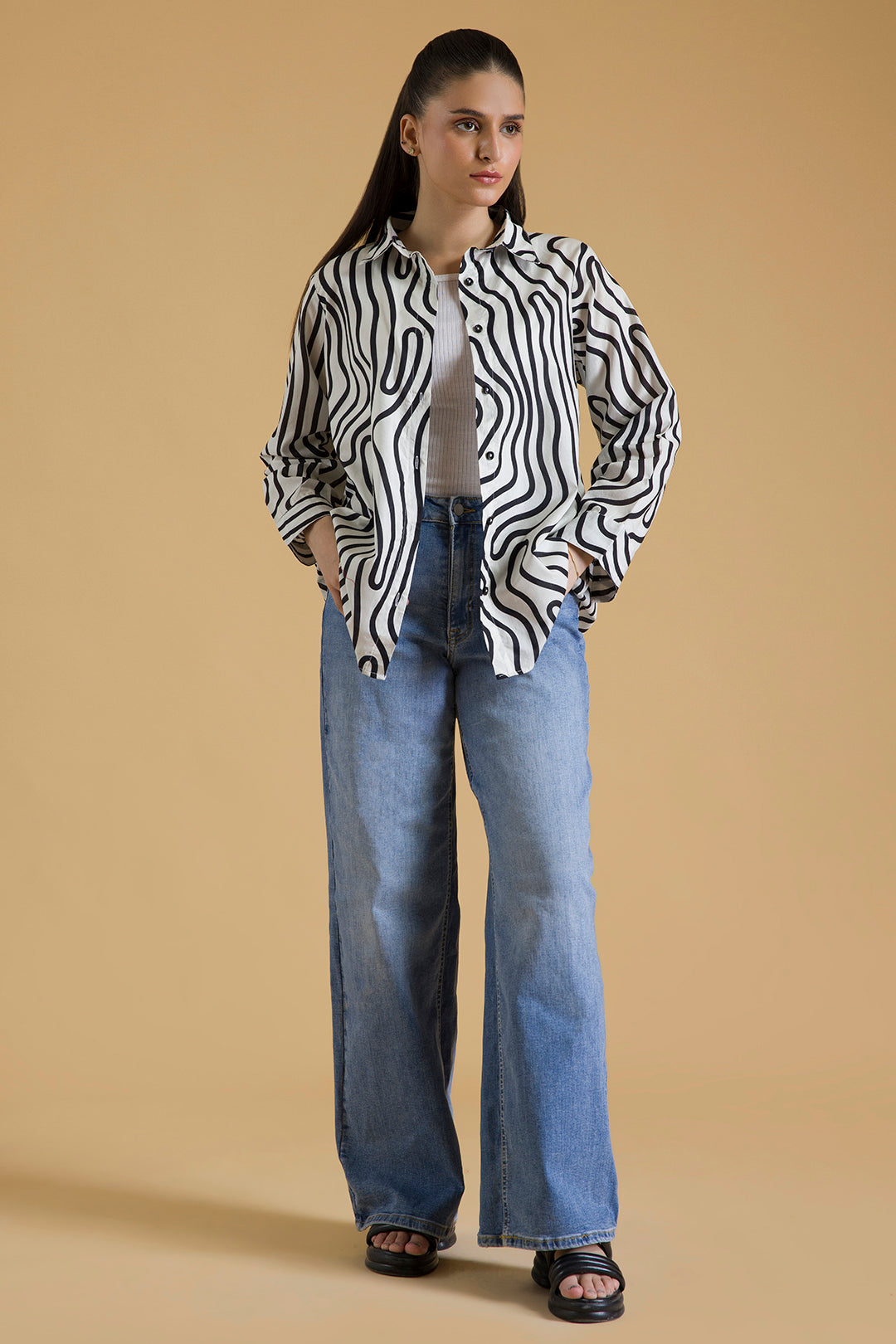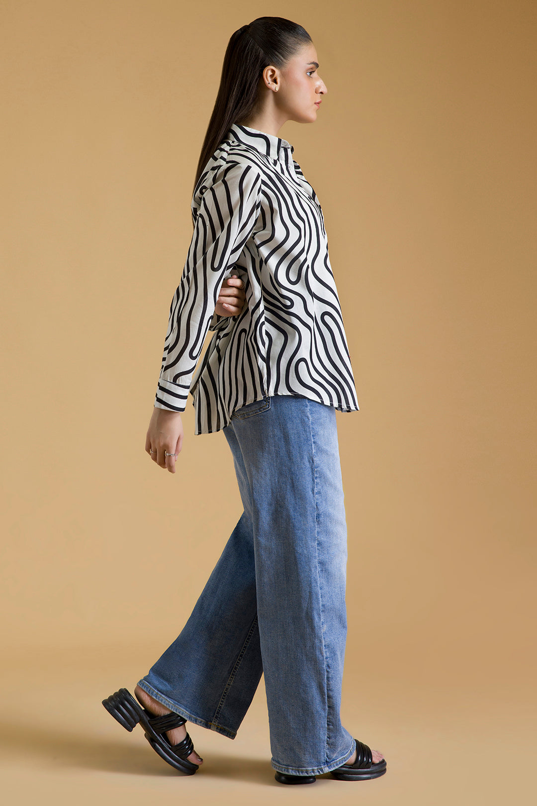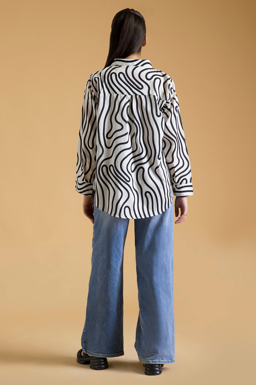 This white women's shirt is crafted from fine cambric fabric, offering a lightweight, breathable feel ideal for daily wear. Its printed pattern adds subtle elegance while maintaining comfort and durability. Perfect for a polished yet relaxed look, this shirt balances style with practicality.