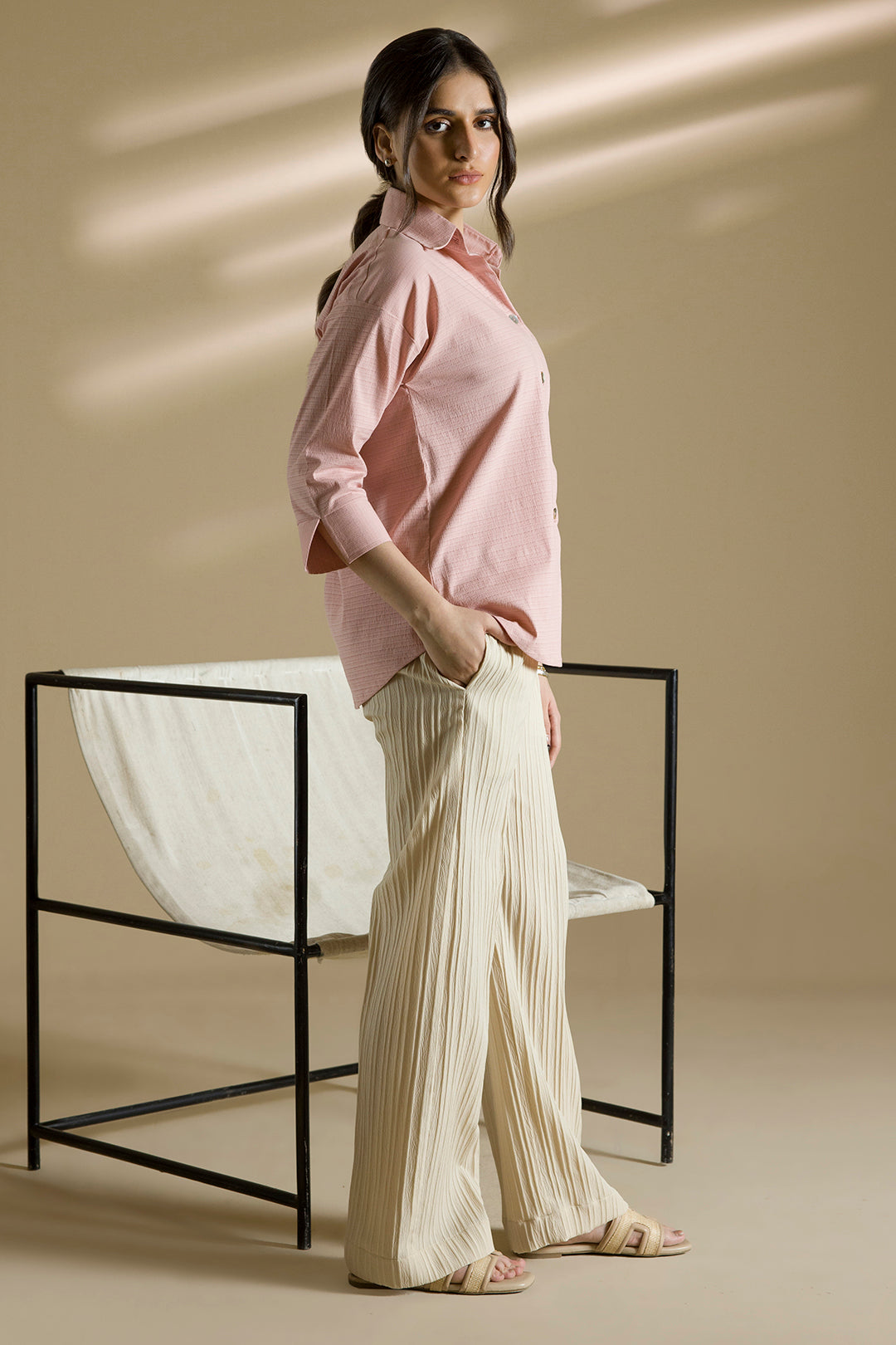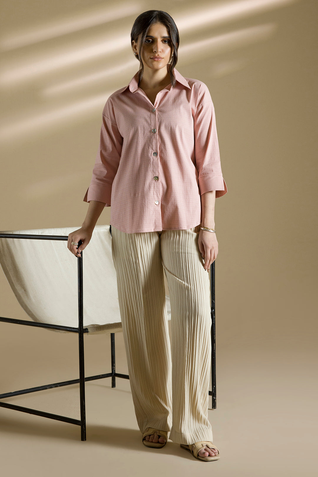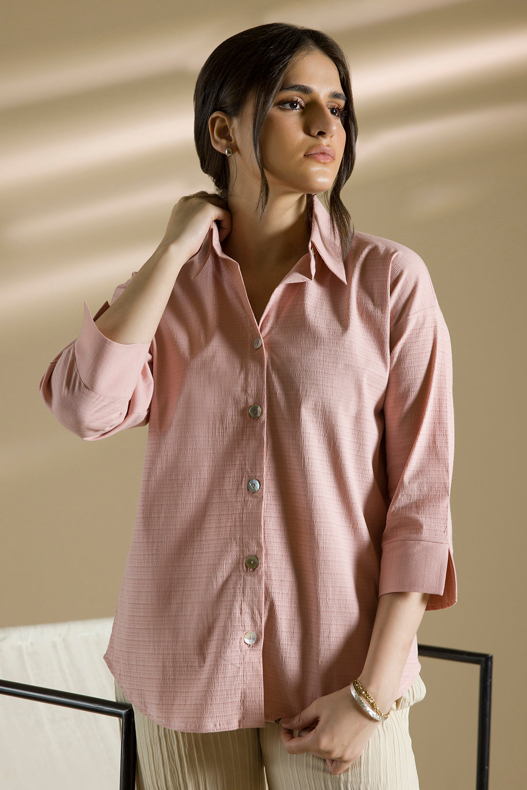 Printed, Women Shirt, Color: Light Pink, Fabric: Textured