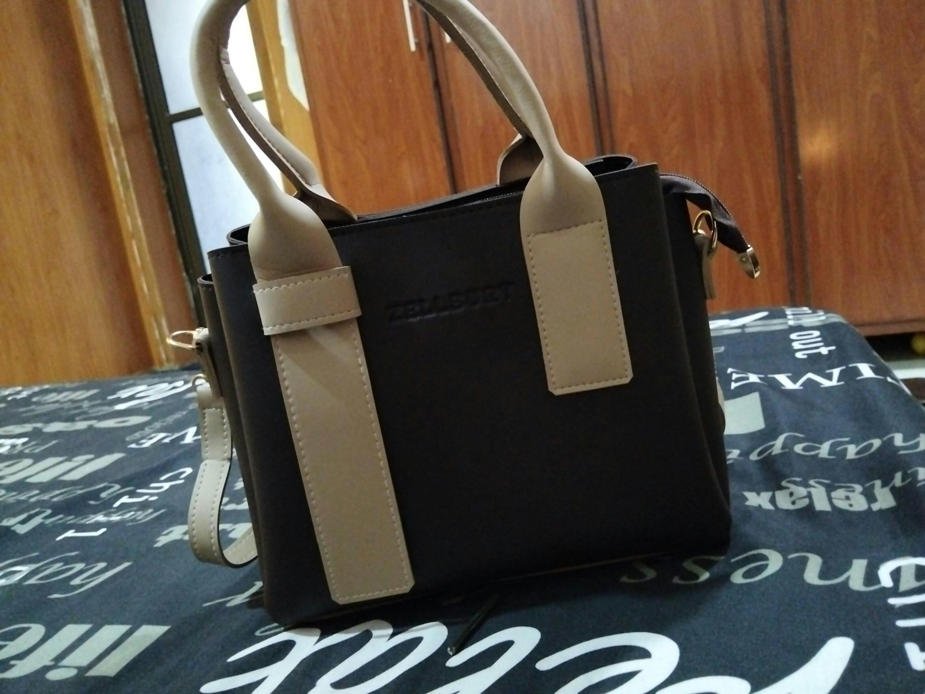 Shoulder bag with single compartment, insisde pocket with two hand carry handles.